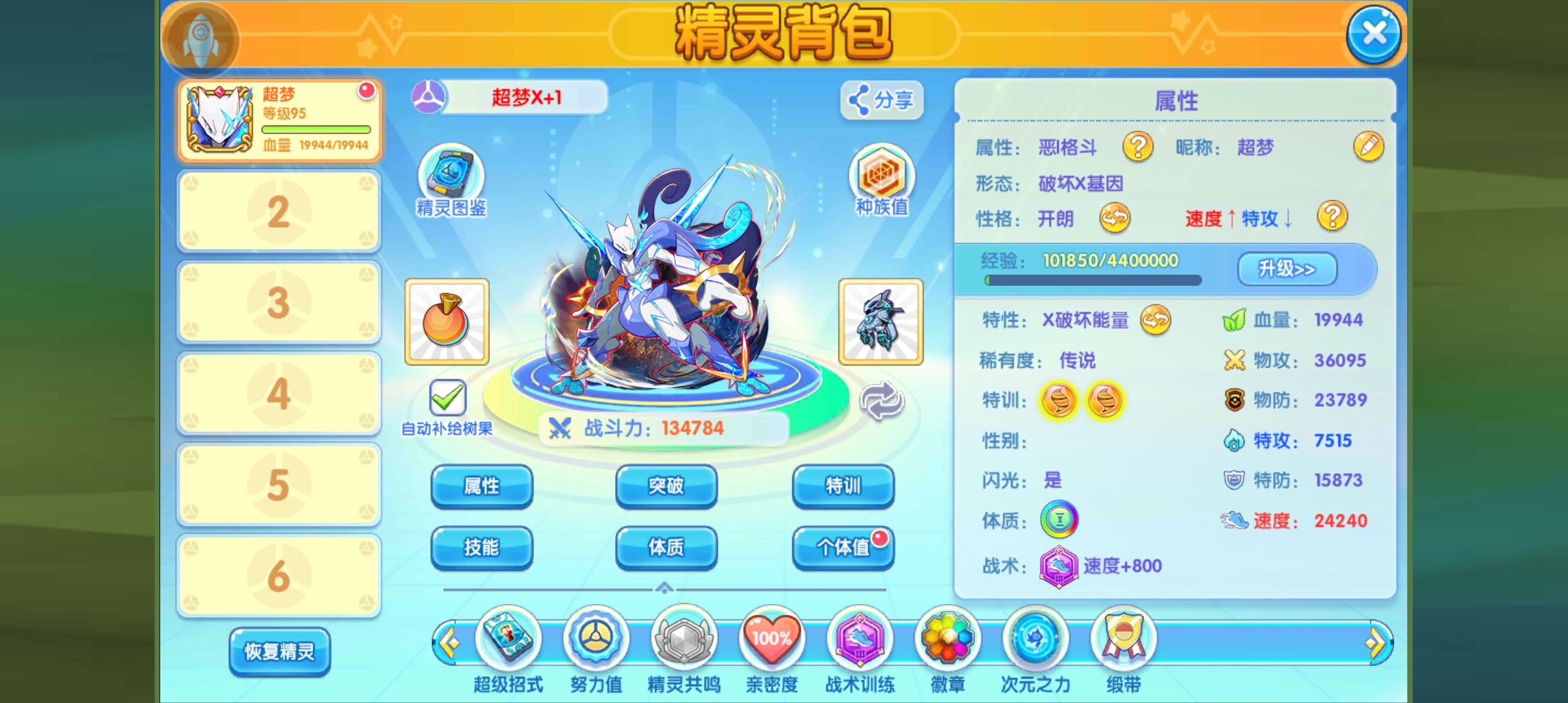 另外一个形态的话属性是超能和妖精偏向特攻面板的话,完全和之前的x形态进行了调转,就是速度和血量没有改变两者都是一样