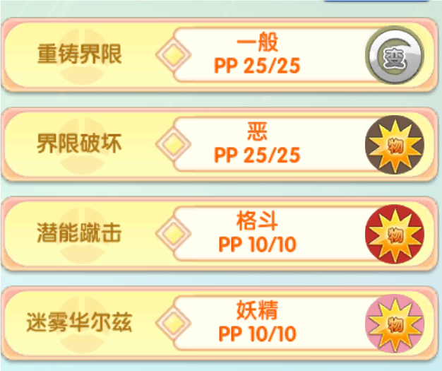和究极超梦不一样的是,两个专属技能无法额外使用,只能够占用两个技能位置,变成有次数的技能了,并不是像究极超梦那样可以无限使用,这两个技能的效果就是一个高威力加回血,并没有什么其他的效果,只有究极超梦才拥有特殊的效果,剩余的两个技能,我是推荐大家一个反弹障碍物的迷雾华尔兹和封回血潜能蹴击,由于x形态我前面就说了,它是偏向于自身强度不是服务队友,所以在技能方面的话,可以适当的服务下队友。就比如说这个反弹障碍物让对方的障碍物还给对方,所以大家可以考虑用这个招式,至于封锁回血的话就不用说了,现在能使用这个技能的,尽量都要使用