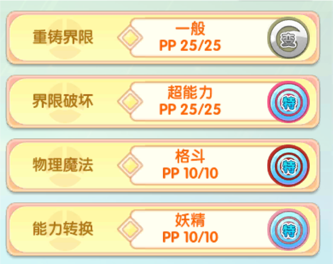 至于另外一个形态的配置的话,也是偏向于输出类型,物理魔法可以打击恶、钢、岩石、冰,这些属性用来丰富自身的打击面,可以说是相当不错,至于最后一个技能能力转换的话,就是反转对方的能力强化的,万一对面强化起来,自己吃不消就尴尬了。