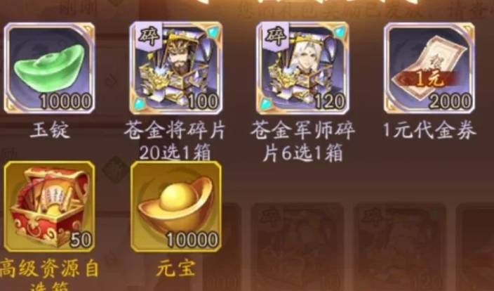 - SG888:元宝388、名将册3、刷新券5、银两30000、武将碎片*5。