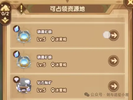 2.扩充资源地上限后,左上角“可占领”寻找高等级矿池,晶石>钻石>粉尘,当然等级是最优先的。
