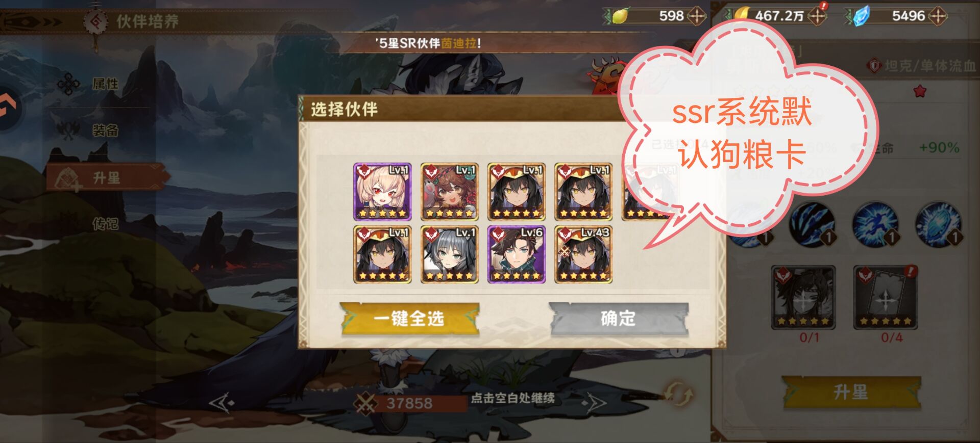 从角色升星方面来看:系统把ssr角色设定默认狗粮卡,狮子一看就不简单。