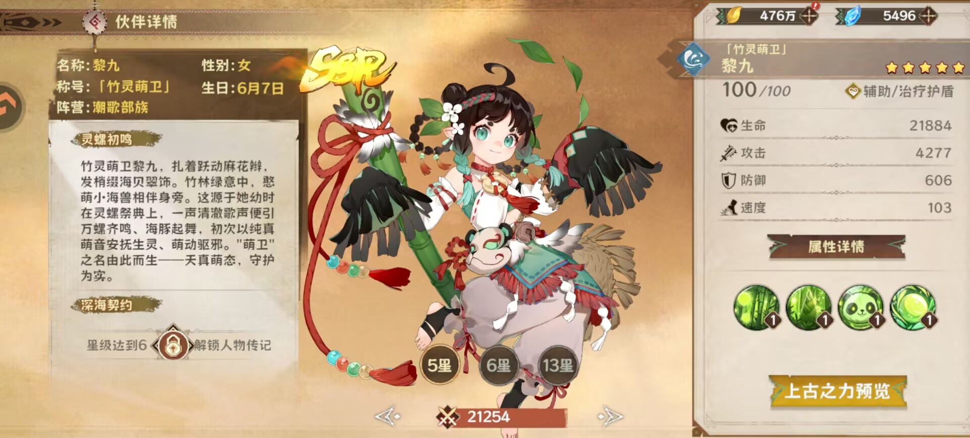 前期比较好用的奶妈辅助,可以给队伍治疗和提供攻击,还有净化能力。对于平民玩家来说确实是个好用的辅助,而且辅助对数值要求比较低,对平民玩家来说可以用很长一段时间。