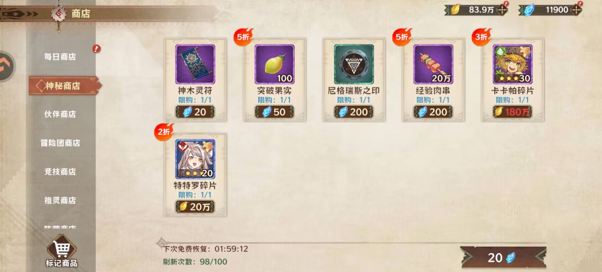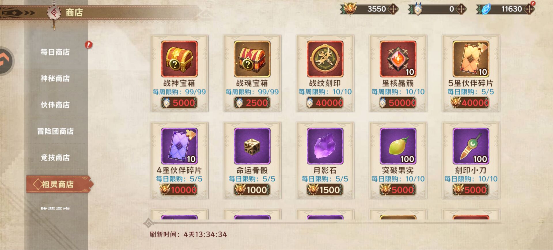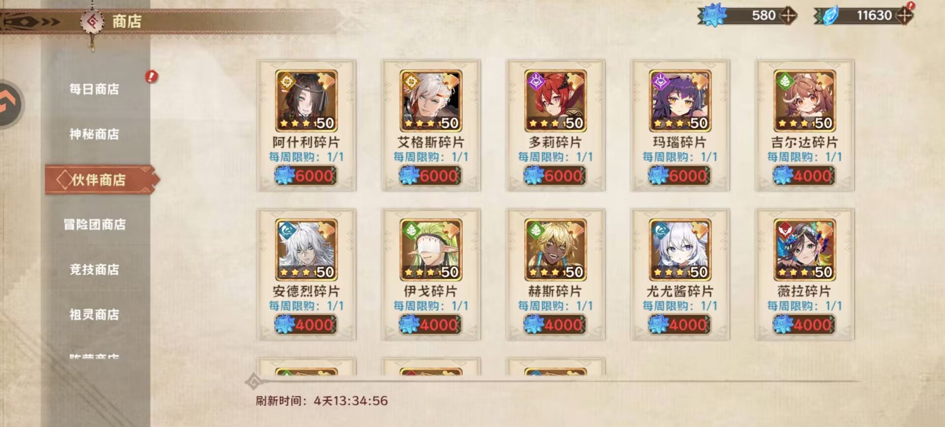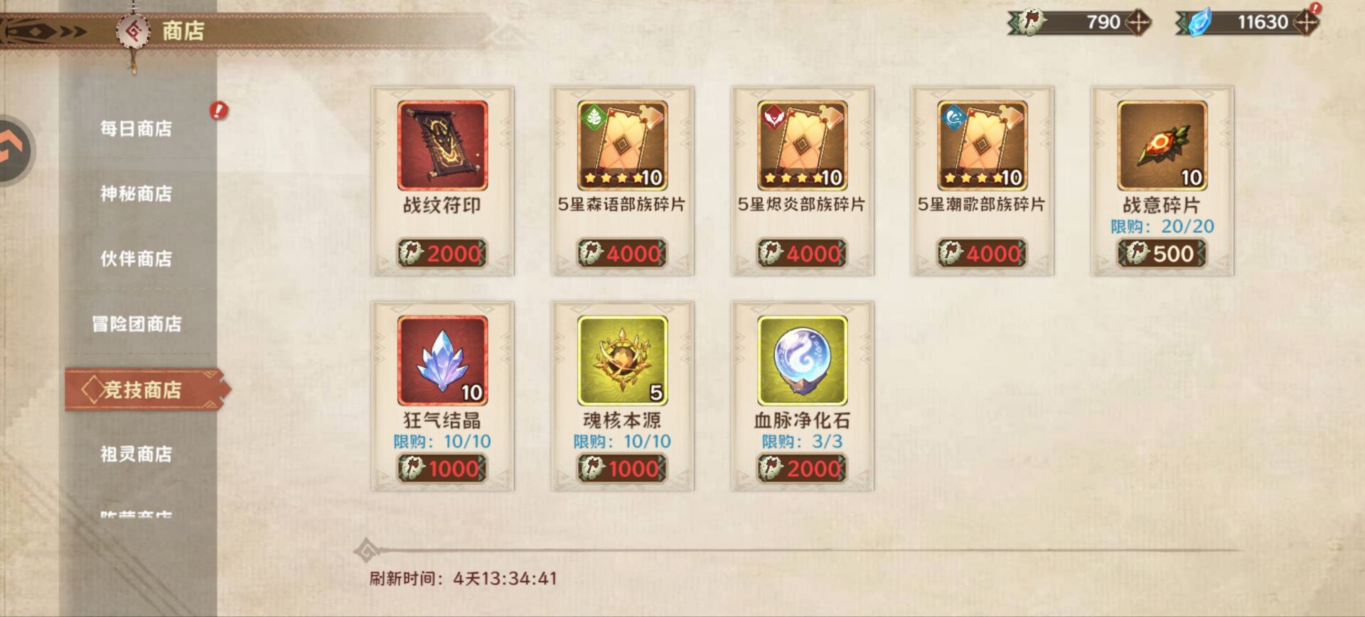 剩下的阵营招募卷、5星伙伴碎片、日轮石、刻印小刀看自己个人需求买即可,不需要就不买多囤点钻石等后续的活动。