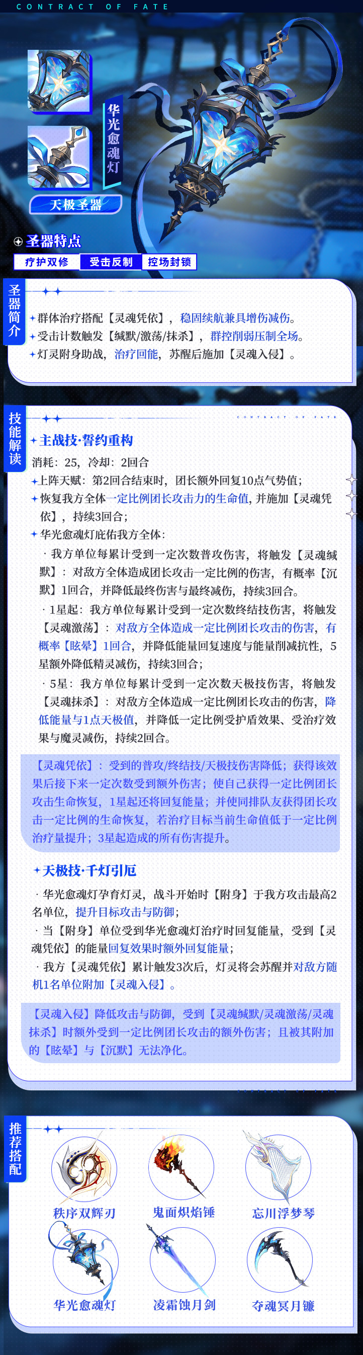 新圣器爆料 |【灯亮了,别慌】挨打还能控场?光环小G发布于 08-22关注华光愈魂灯——一个“越打越旺”的圣器,看似是个奶灯,其实是全场最狠的反打核心!全新天极圣器·华光愈魂灯即将登场! 新增天极圣器【华光愈魂灯】天池活动,想要获取新圣器的团长千万别错过啦~● 开启条件:开服天数≥29天的服务器● 开启时间:8月22日5:00-8月27日4:59一盏华光愈魂灯,能奶能控还能反打。团长准备好点亮这盏灯了吗?带上它打出一场“灯火通明”的胜利吧!