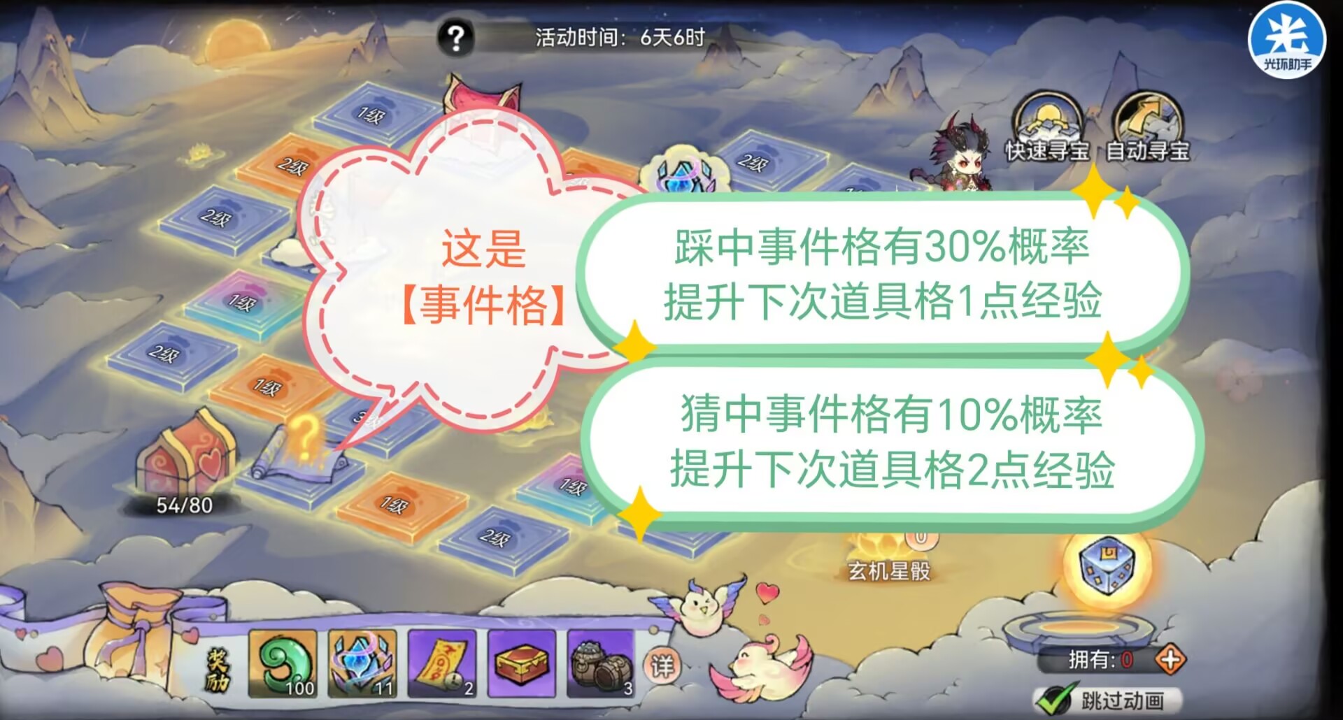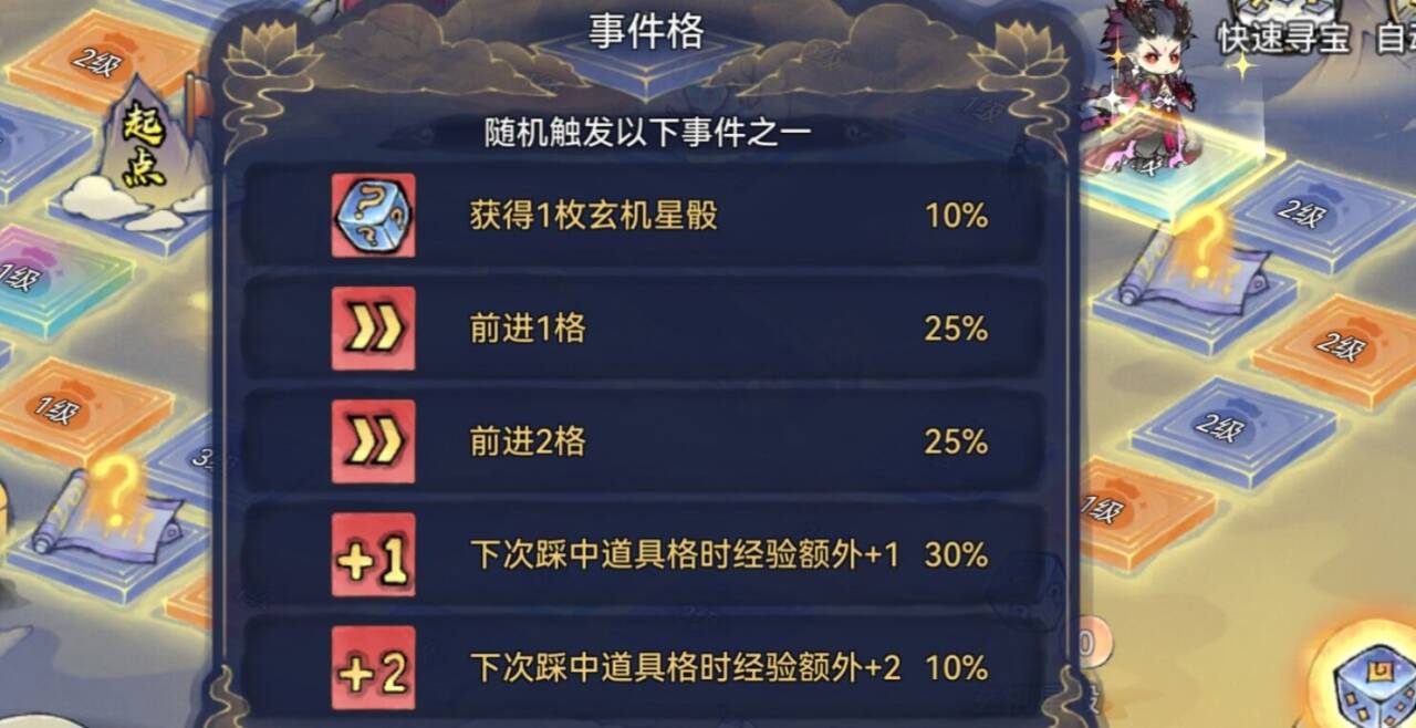 ④第四种:踩中【事件格】有概率会提升道具格的经验。