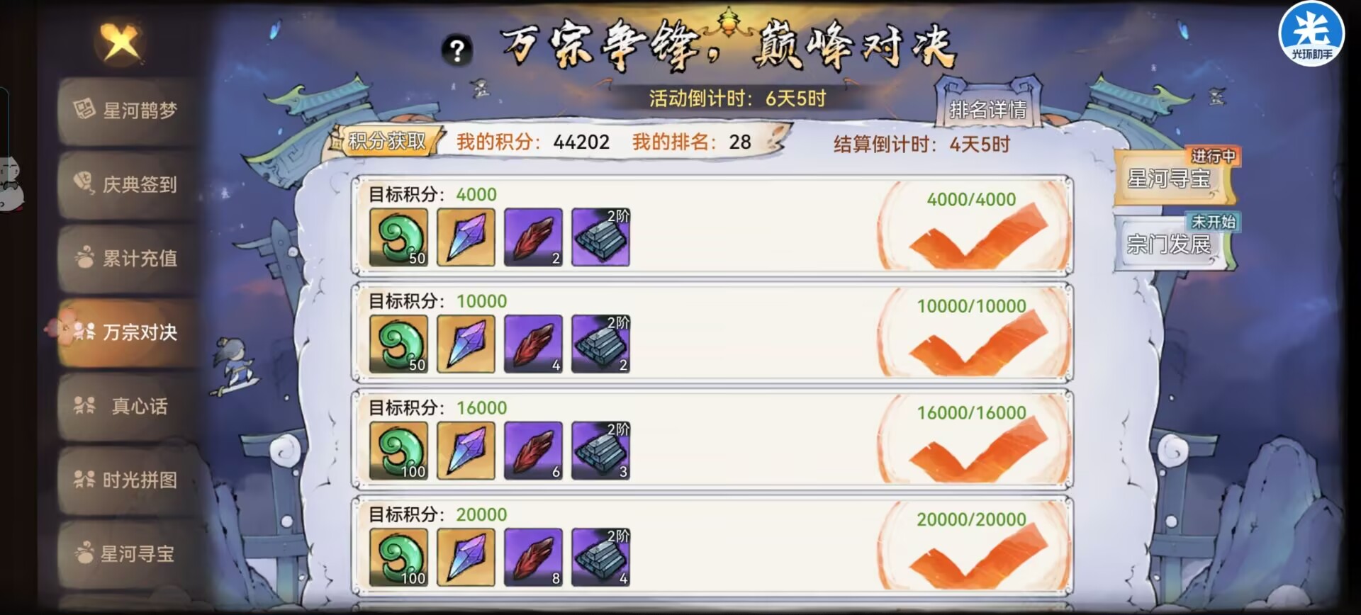星墟破片:可以在本次活动中兑换:全新古宝、全新心法、等等核心道具。