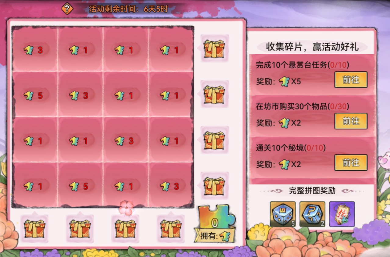 活动期间,祖师完成任务可获得拼图碎片,使用拼图碎片可解锁拼图。