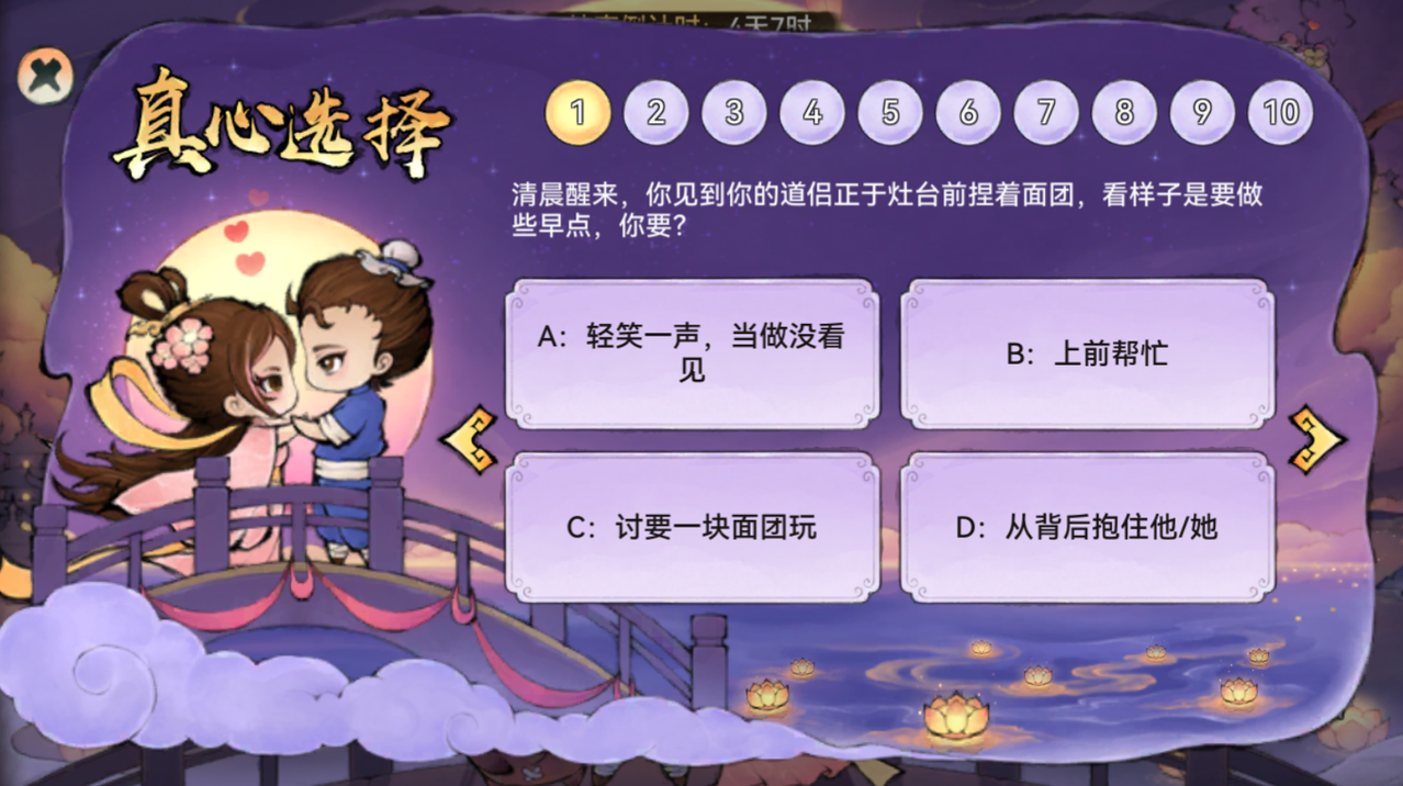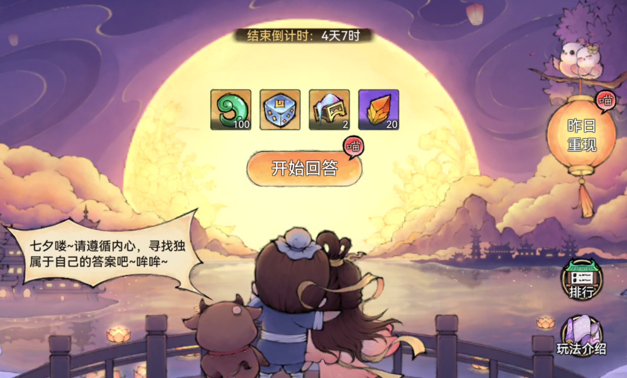 活动期间除最后1日外,祖师每天都可参与一次真心话问答,获得灵玉等答题奖励。