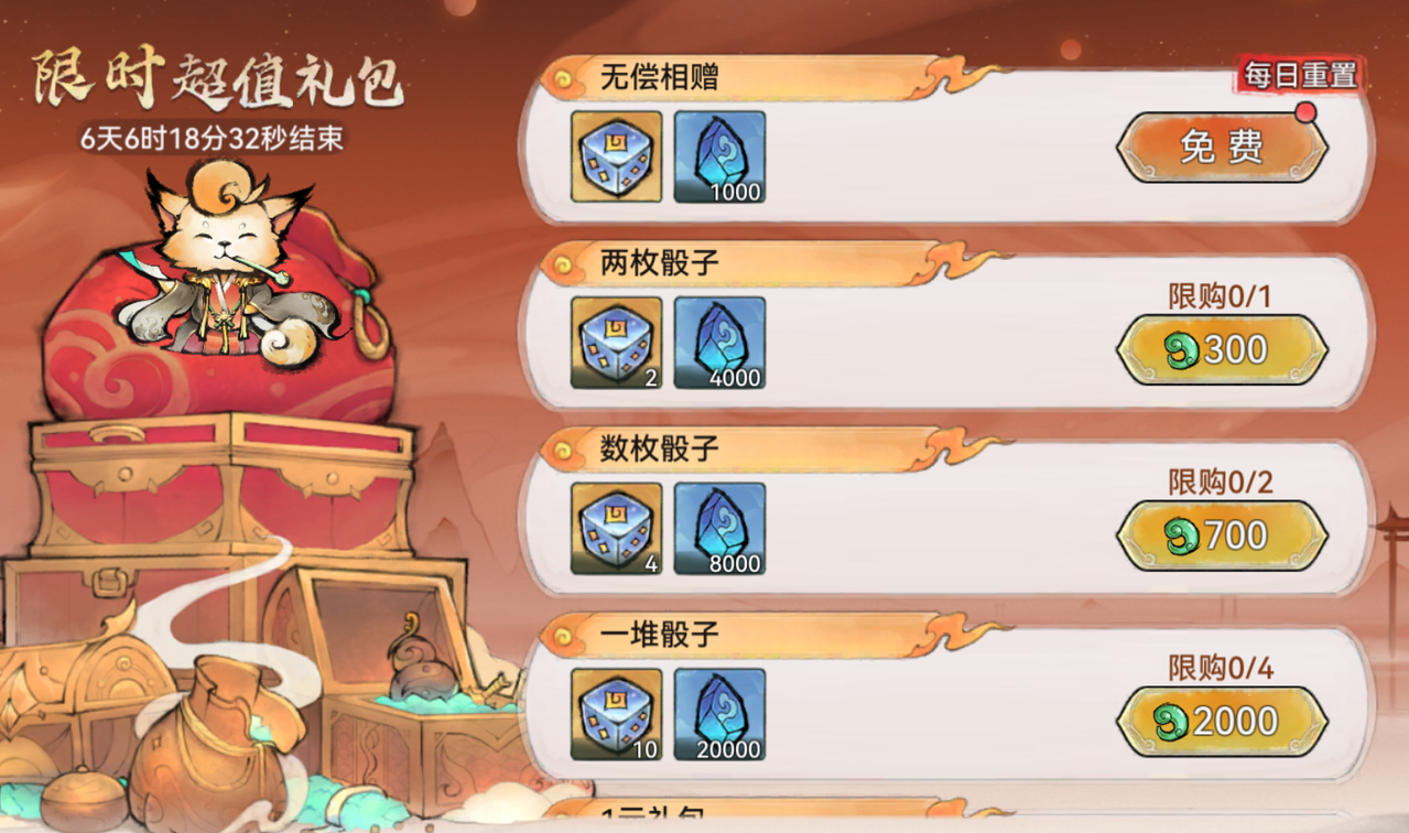 寻宝消耗星河宝骰除了能在庆典签到等活动中获取外,祖师也可通过购买限时礼包等方式获取。![]()
