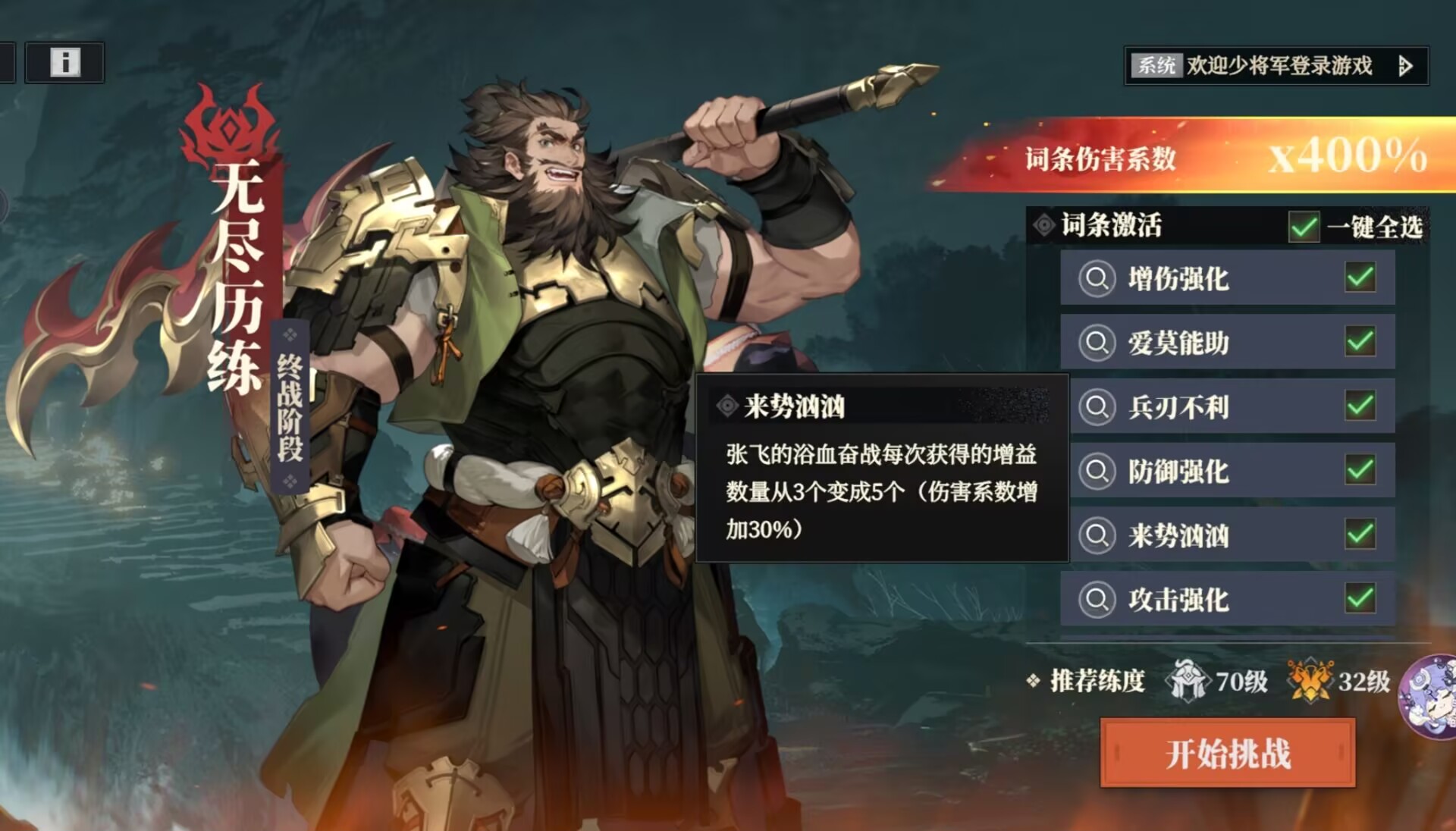 本次活动【无尽历练:张飞】迎来了最后的终极阶段,本期小狮子就给大家带来一套可以打3000万+高分阵容推荐和打法思路。