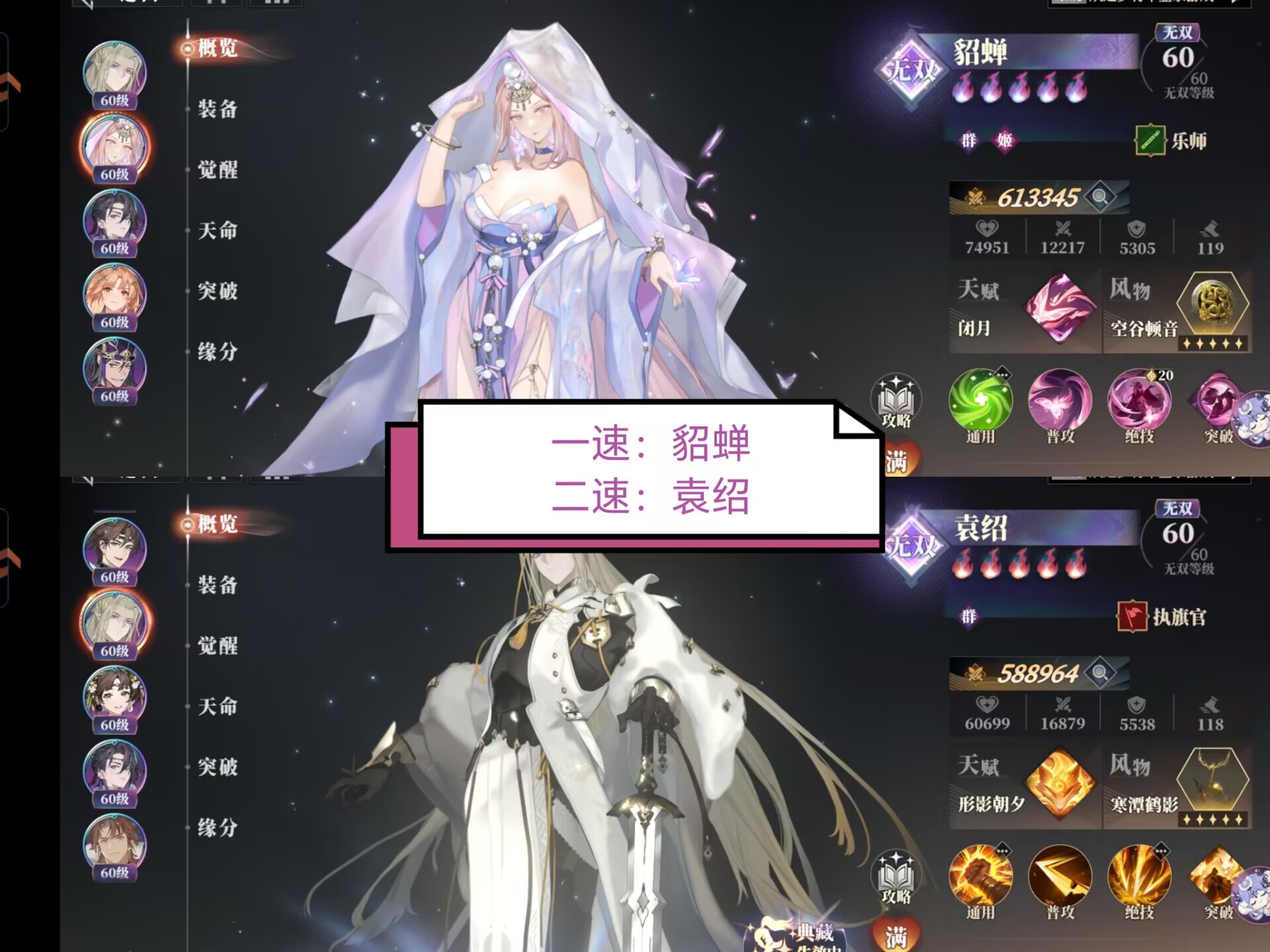 ①一速:貂蝉拉满速度119(起手加护盾)