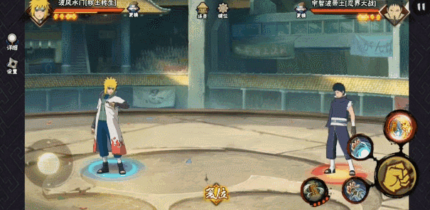 秽土水门使用普攻3A或一技能给敌人打上飞雷神标记后,在能量条满时长按释放二技能,被查克拉外衣包裹的秽土水门会召唤分身,可直接将被标记的敌人抓到面前,与分身一同使出螺旋丸左右夹击!