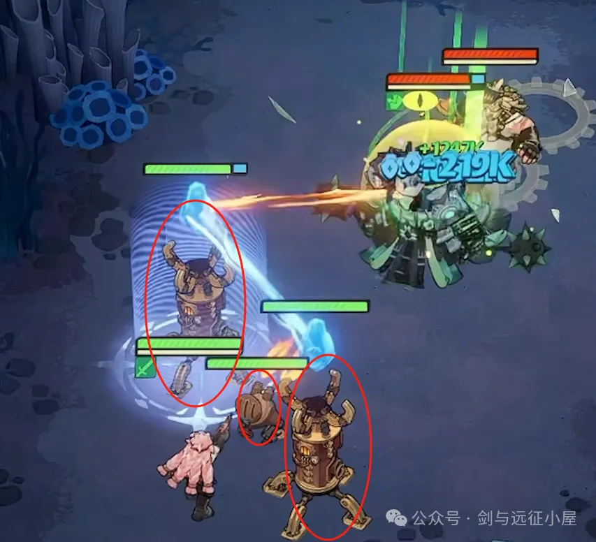 开局召唤2座激光塔(继承80%攻击/140%生命),二技能追加机枪塔,形成“4打1”开局。