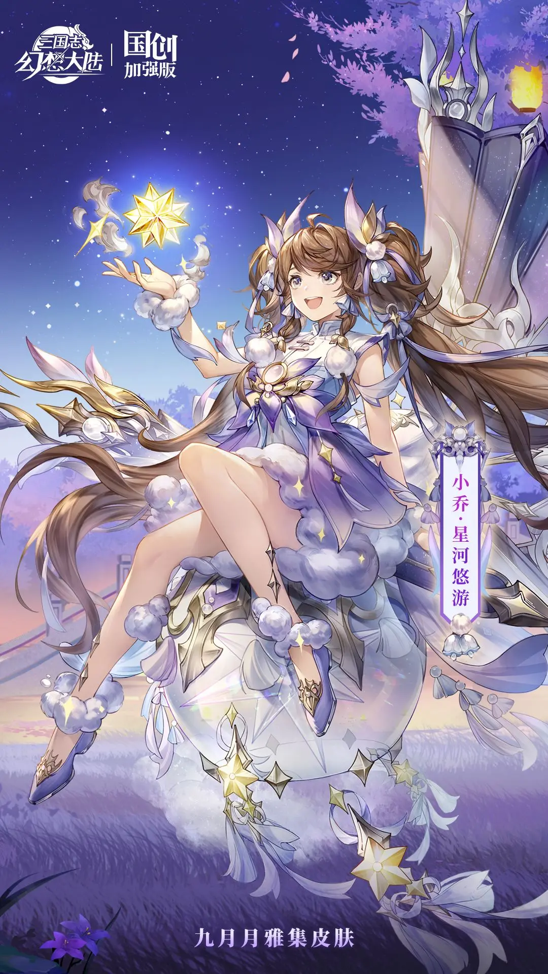 迟迟钟鼓初长夜,耿耿星河欲曙天。香香又来爆料了!小乔月雅集皮肤会在2025年9月1日正式上线!今天先来欣赏一下这款全新的皮肤:小乔——星河悠游。