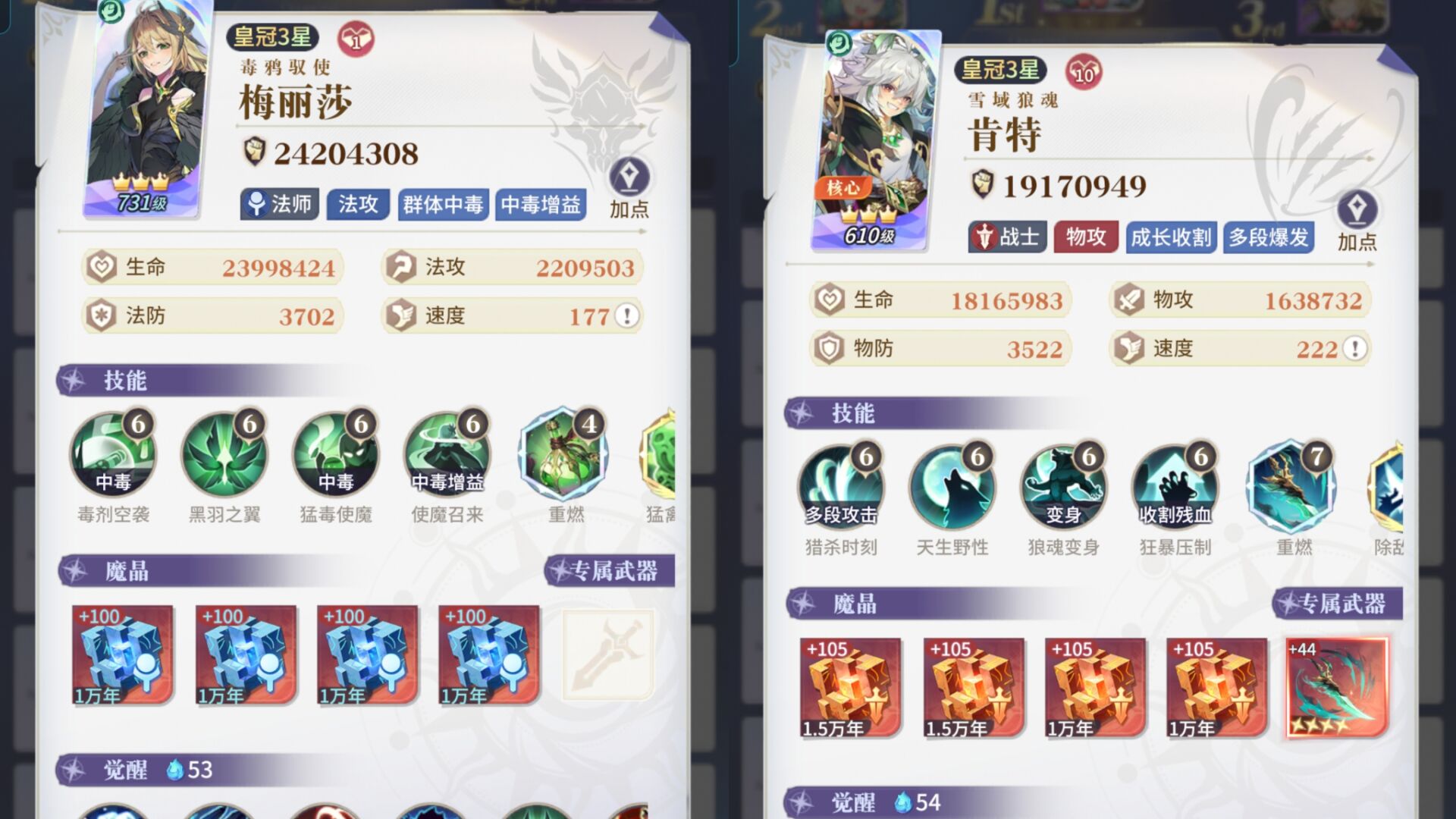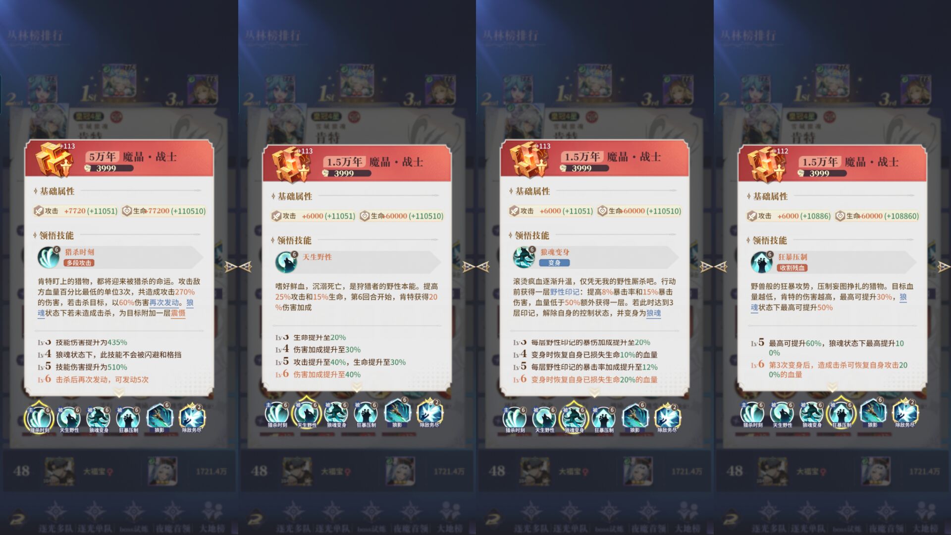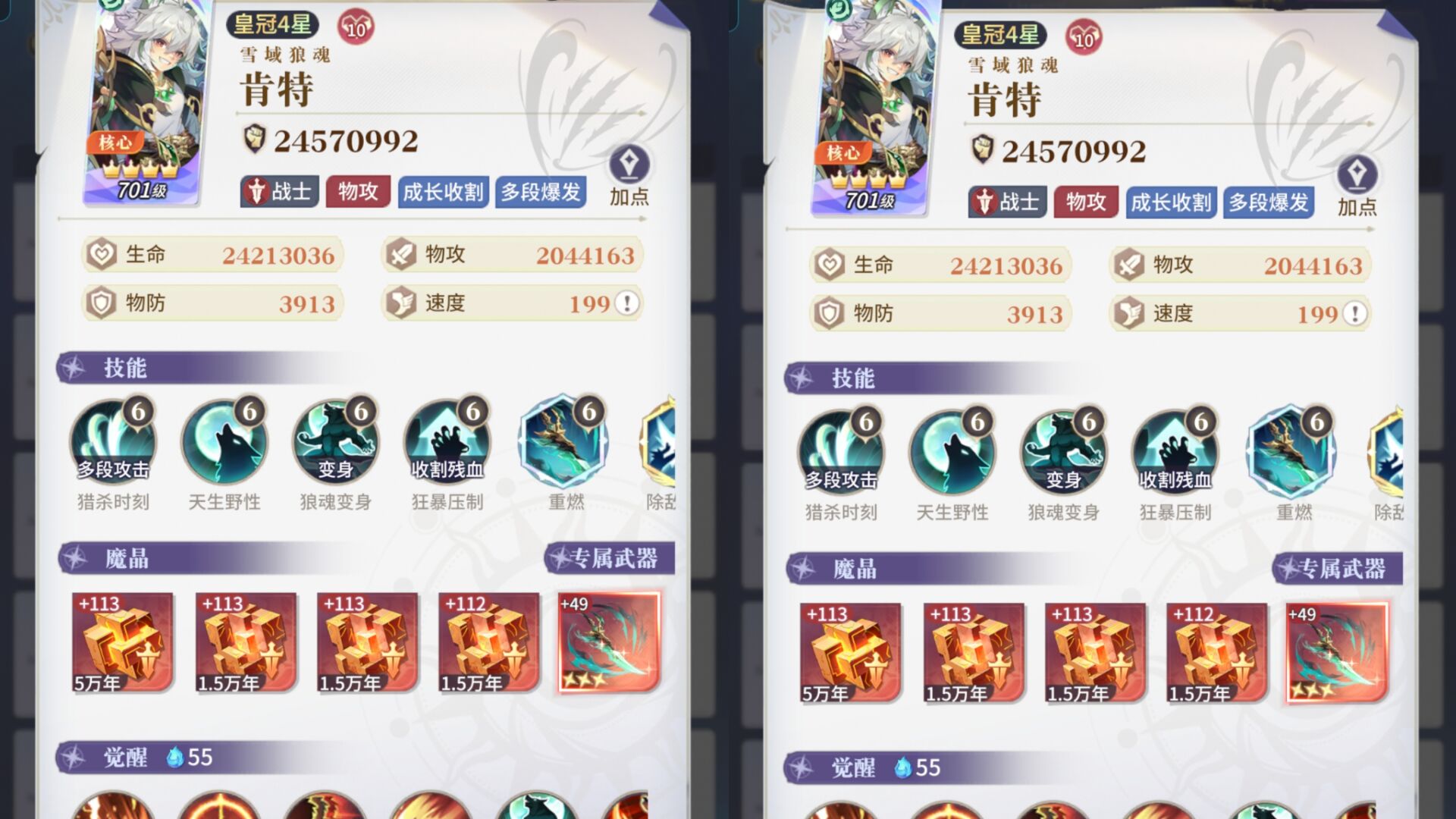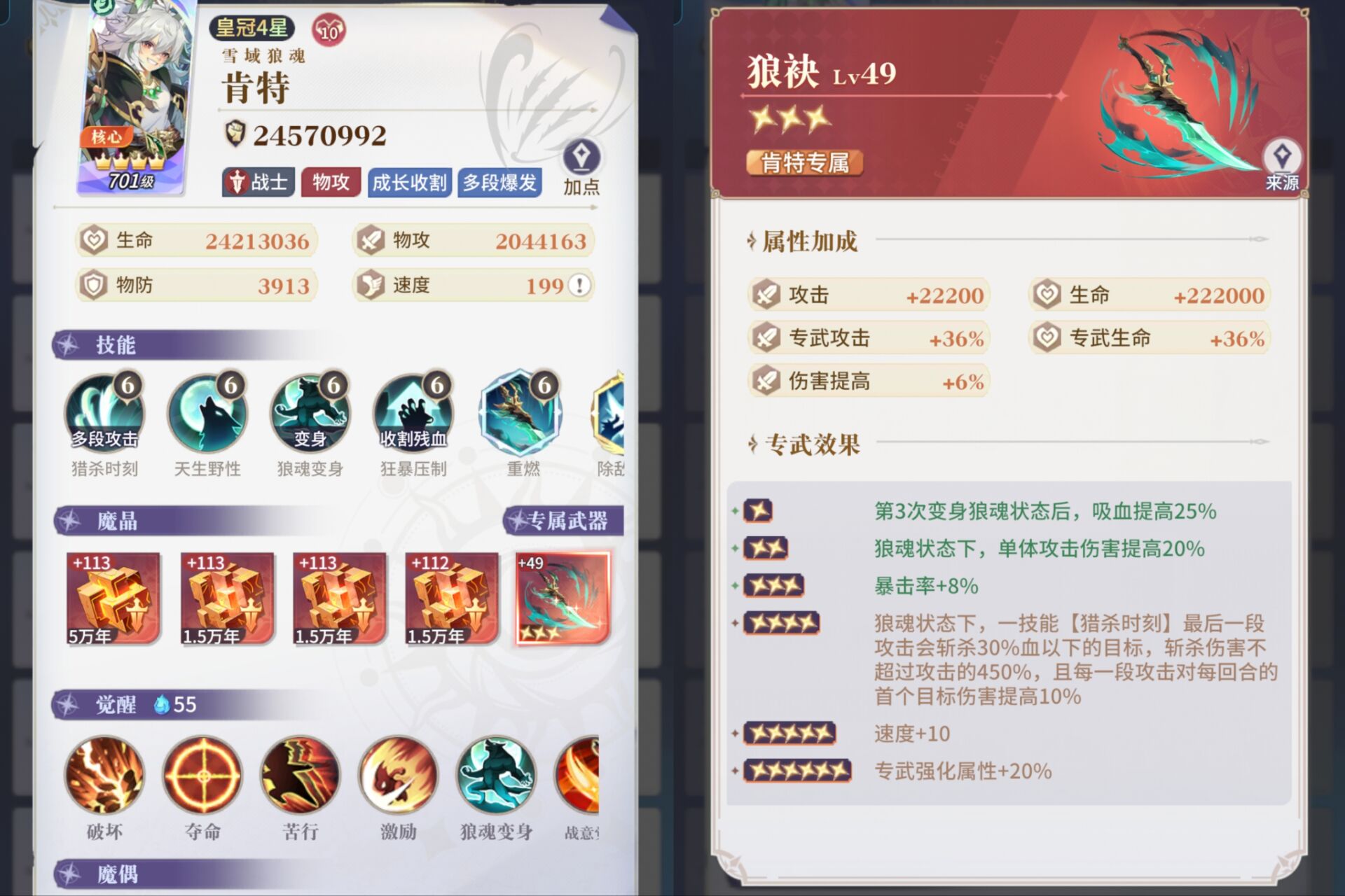 狼人起码也得永恒5星以上才比较好用,而且还有一点就是需要万年魔晶,没有万年魔晶的狼人伤害也是差一大截的。