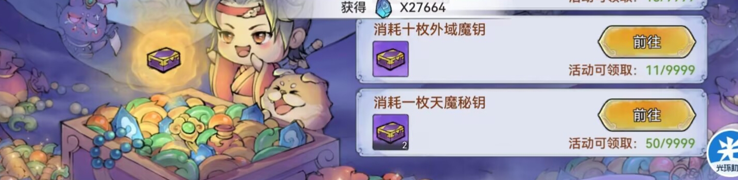 大家看到这里是不是很熟悉?因为我们前期开荒阶段就有这个用【天魔秘钥】开启【天魔宝箱】的玩法。