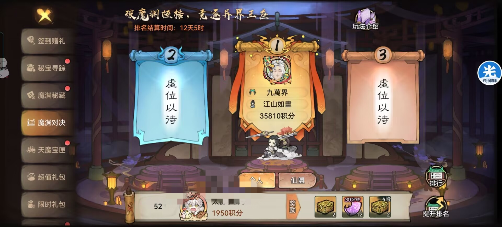 四:【魔渊对决】玩法介绍+指南。简单的说就是比谁开的【天魔宝箱】更多哪里是什么对决!