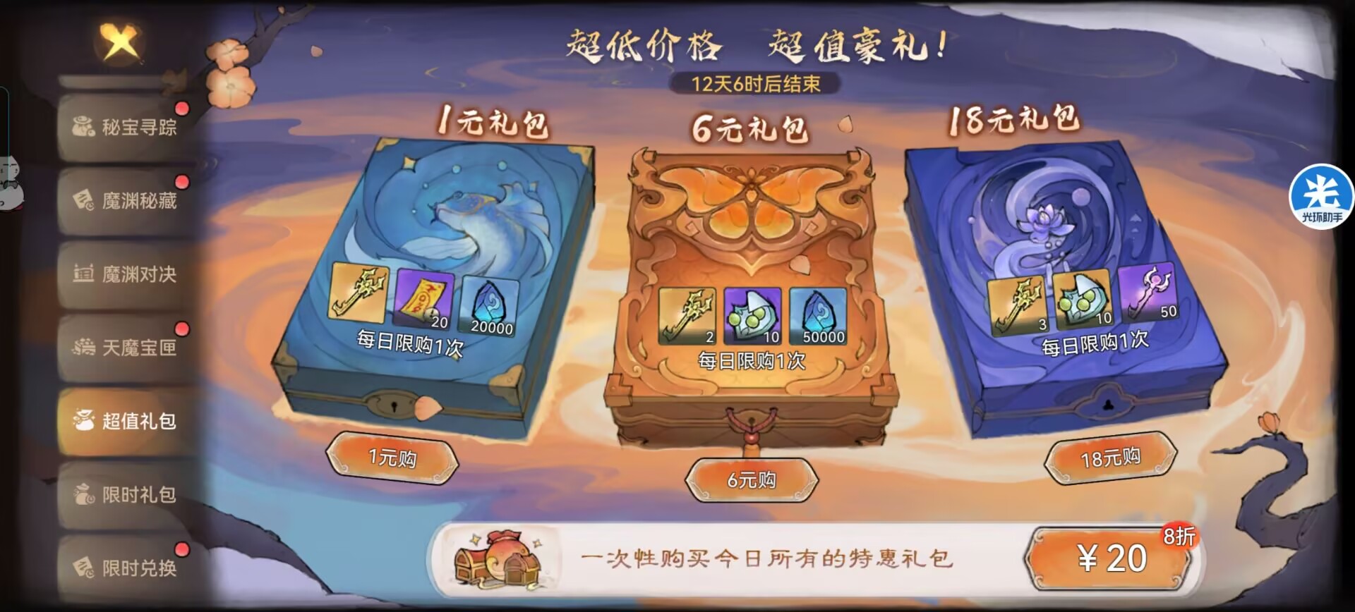 4:魔渊对决。5:天魔宝匣。6:超值礼包。
