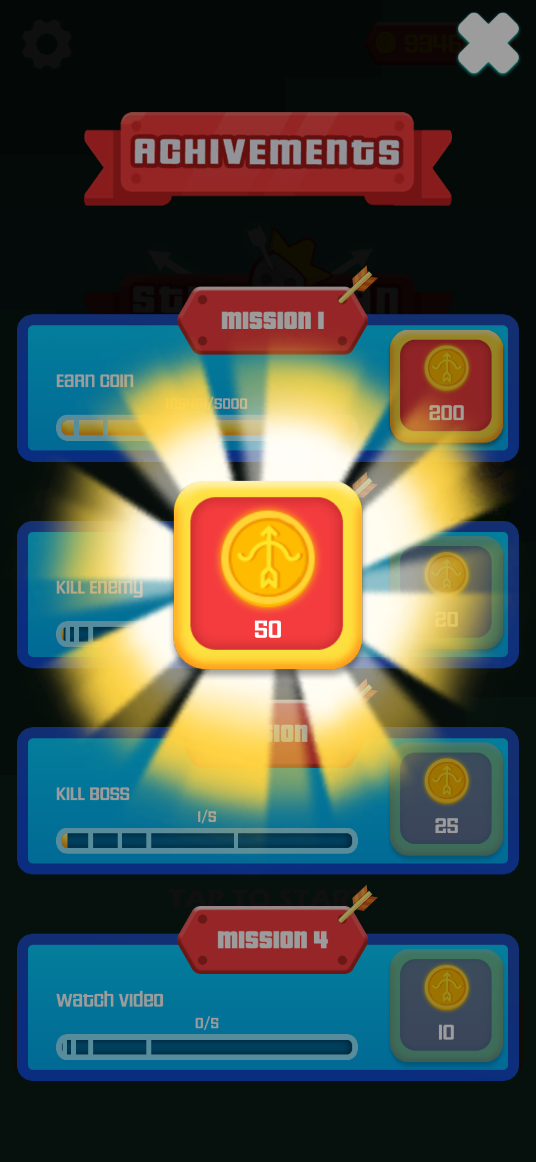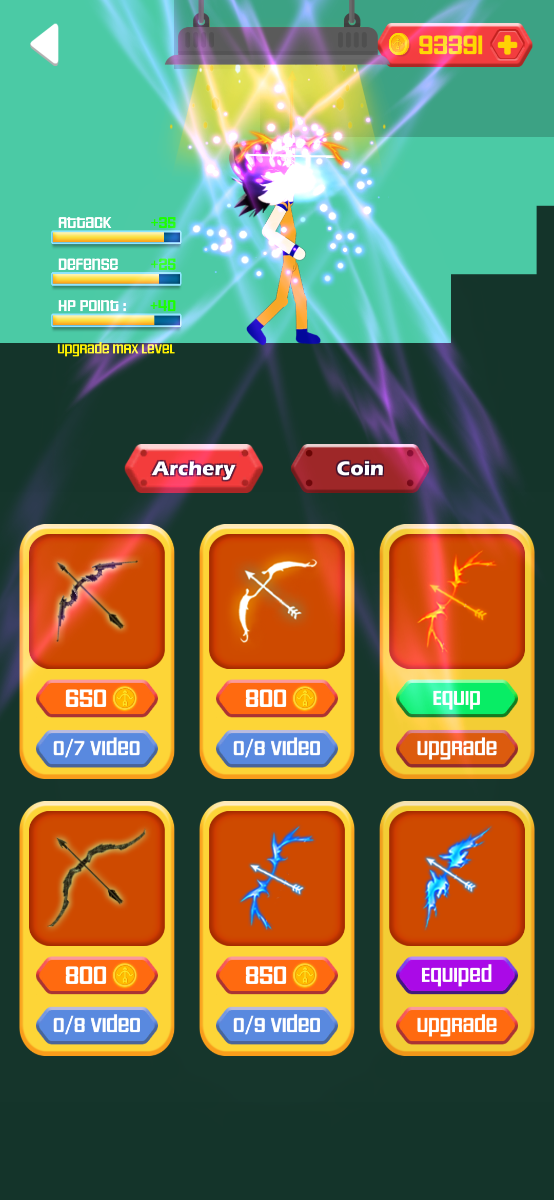 《超帅弓箭手》也有弓箭的等级及属性的划分,22把弓箭,3个人物原型,对于一款体量较小的射击类游戏来说是足够了,同时玩家们还可以用金币升级人物和弓箭的属性。
