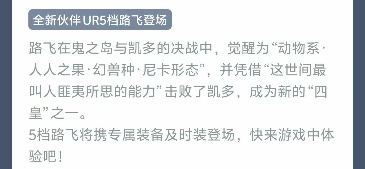 全新尼卡路飞来了,直接五档带装备和时装,讲道理时装应该有不少的