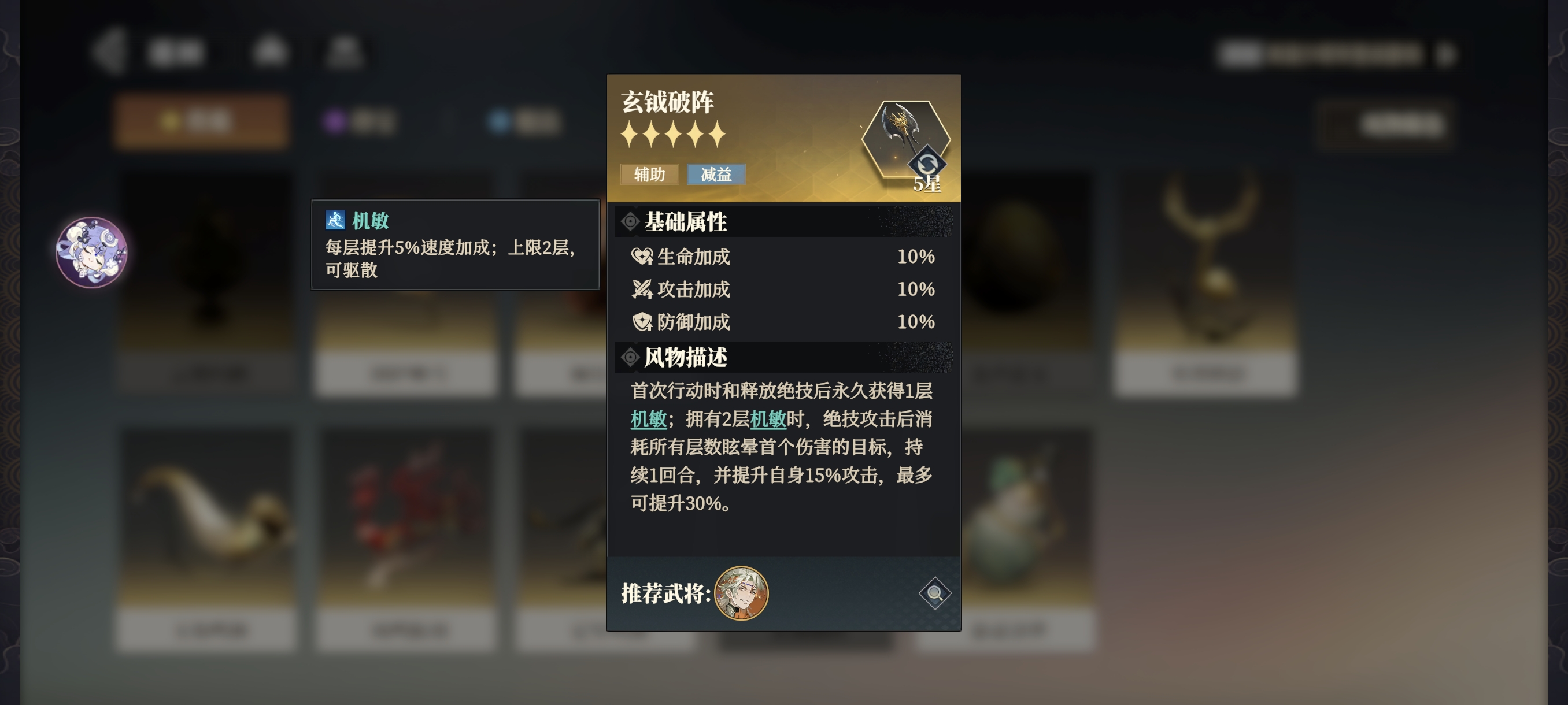 朱然的风物最优先选择推荐风物-玄钺破阵。