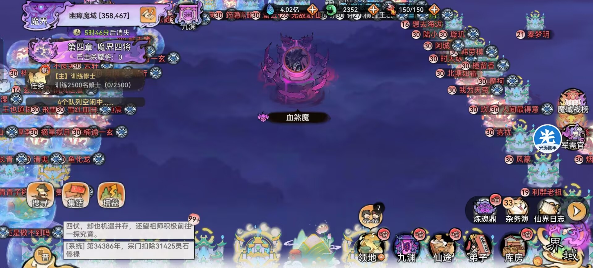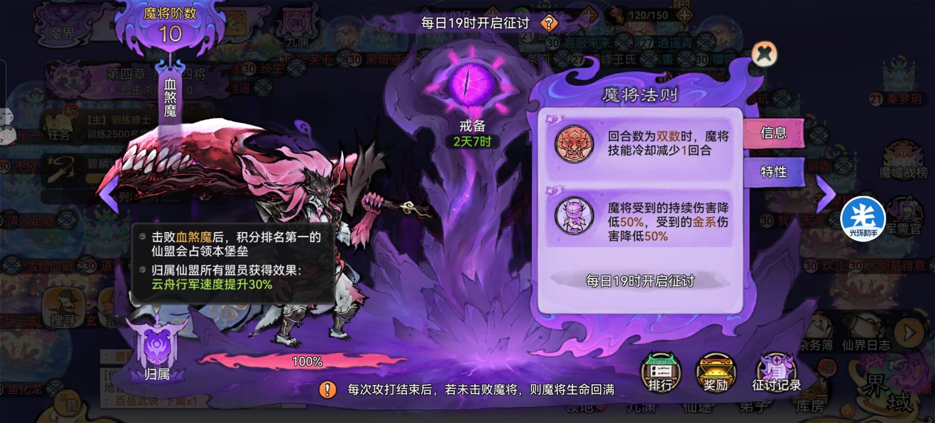 ④哪个仙盟打的伤害最高,积分更好!排位第一的仙盟可以将【魔将的堡垒】给占领。