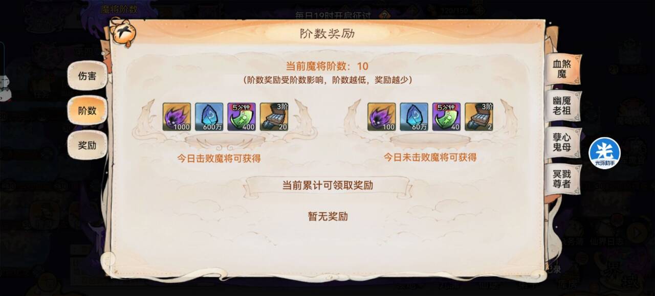 首先魔将阶数难度最高是10阶,每天会下降1阶,难度越低这时候魔将也会更好打,但是呢奖励自然也会少一些的。