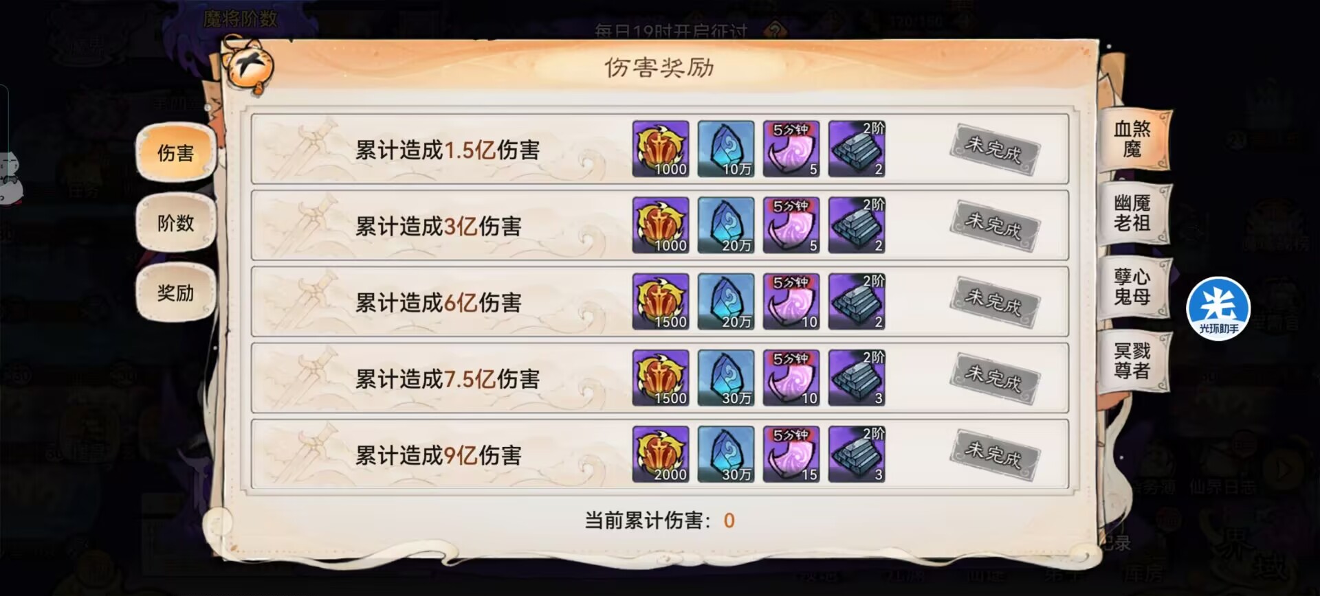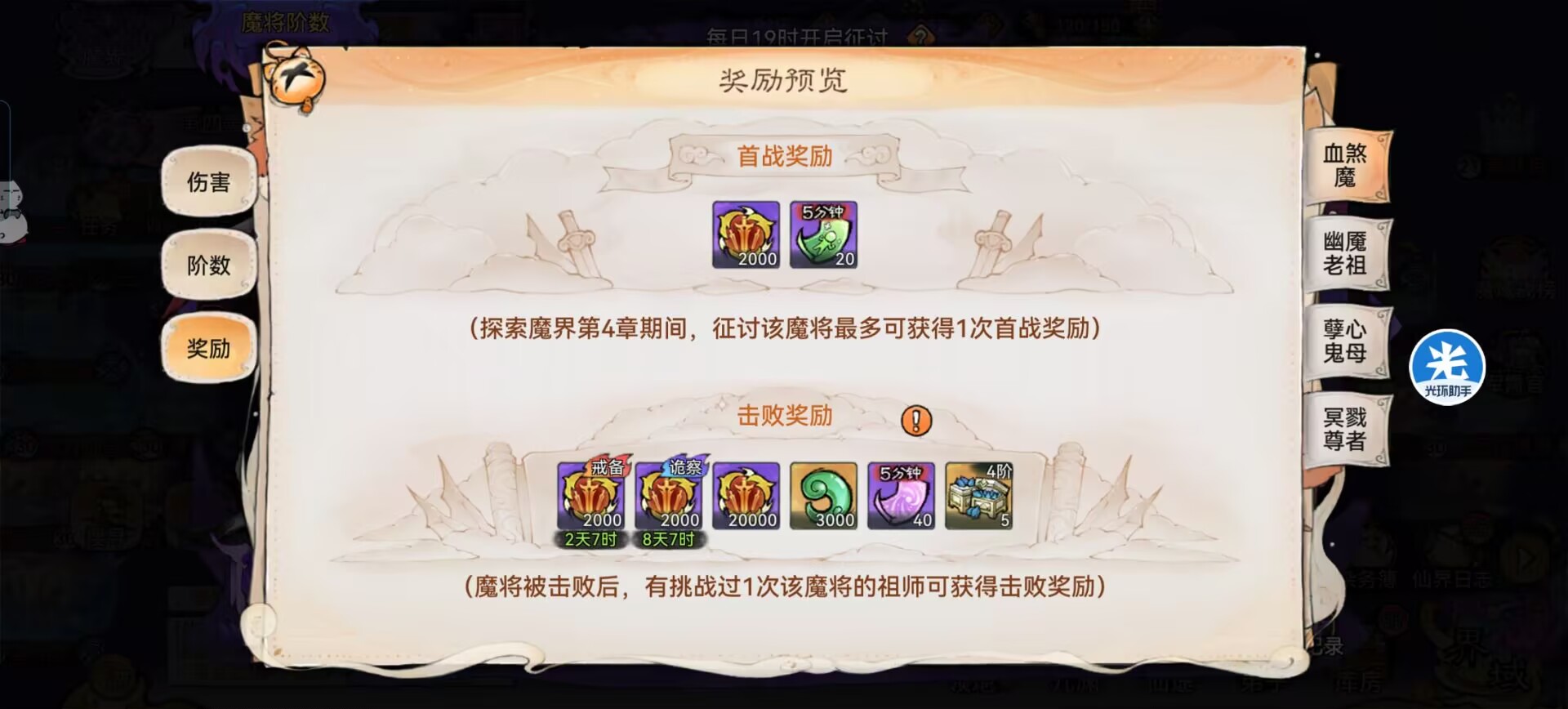 4:魔将的奖励机制:①个人伤害奖励主要是:斩魔道勋、炽焰宝箱等奖励,打满伤害还是挺容易的!24亿伤害即可满!