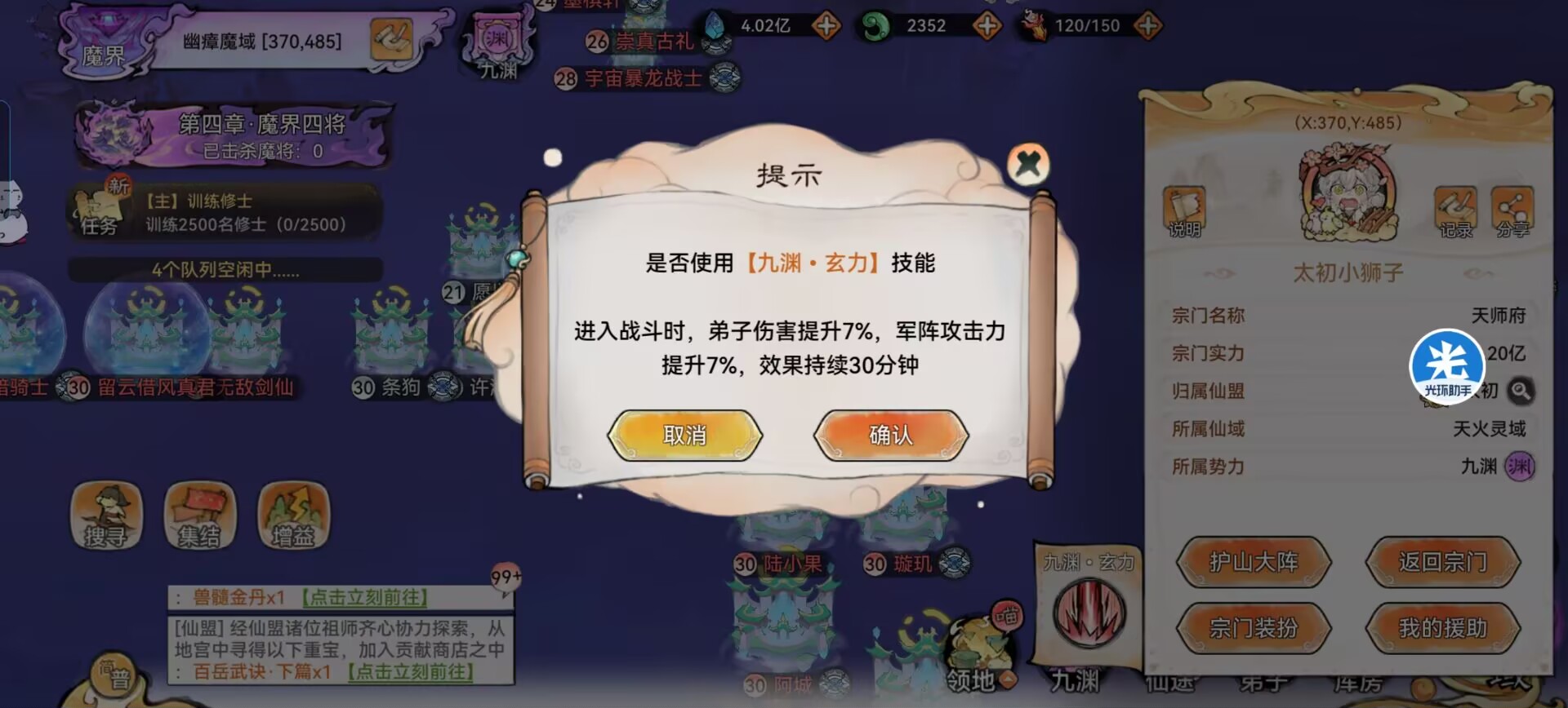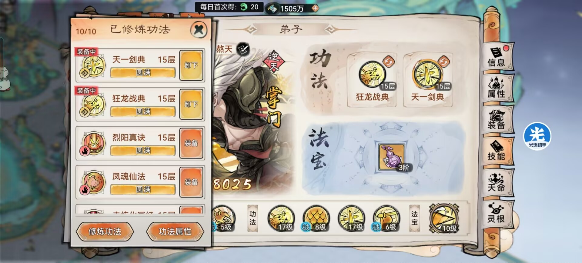 ③10阶第一天的魔将伤害很高,基本可以秒我们的,所以我们弟子要多带点复活功法和锁血类的弟子,能打多少是多少。