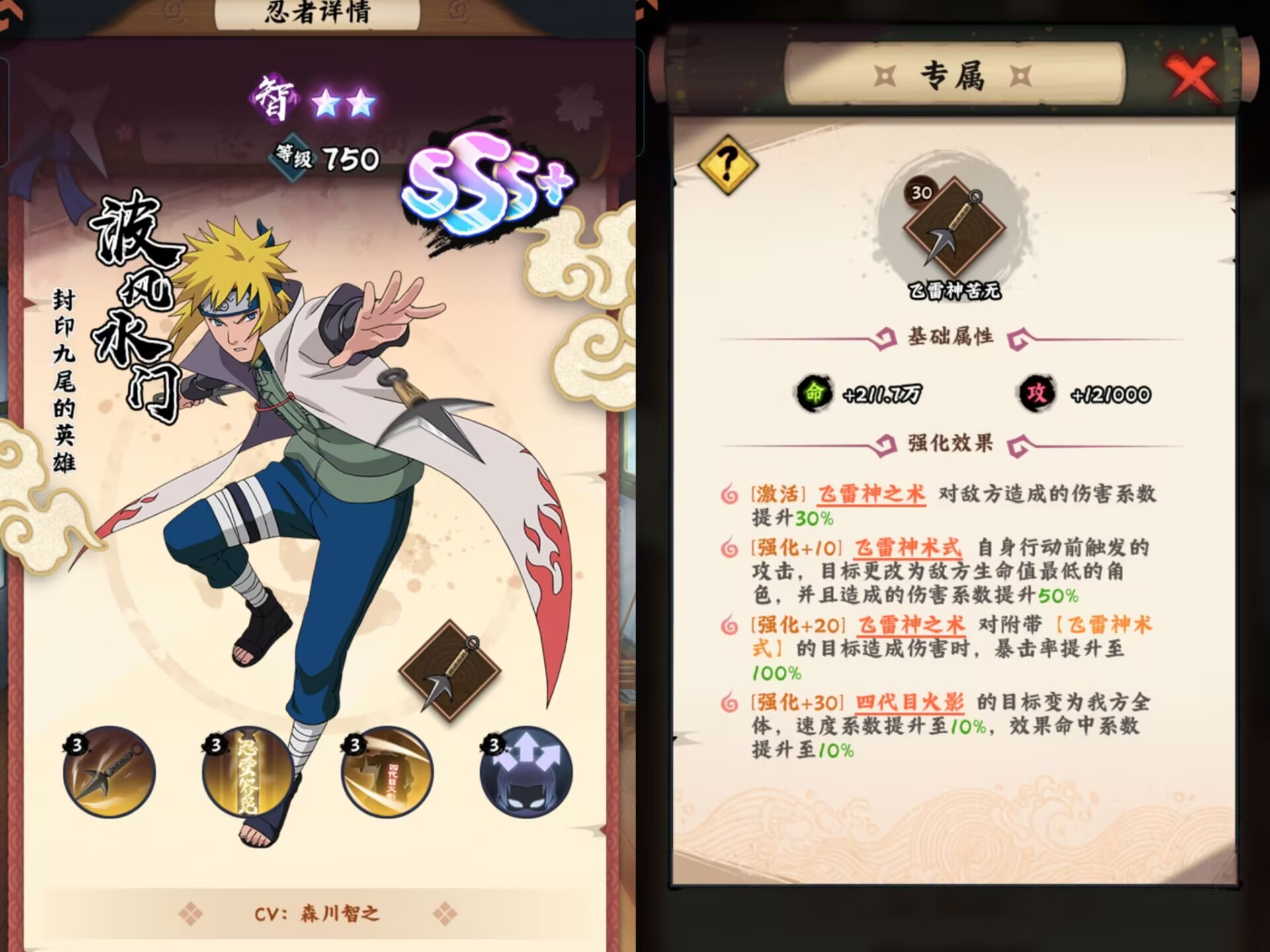 另外四代火影专属起码也得+10才能用。