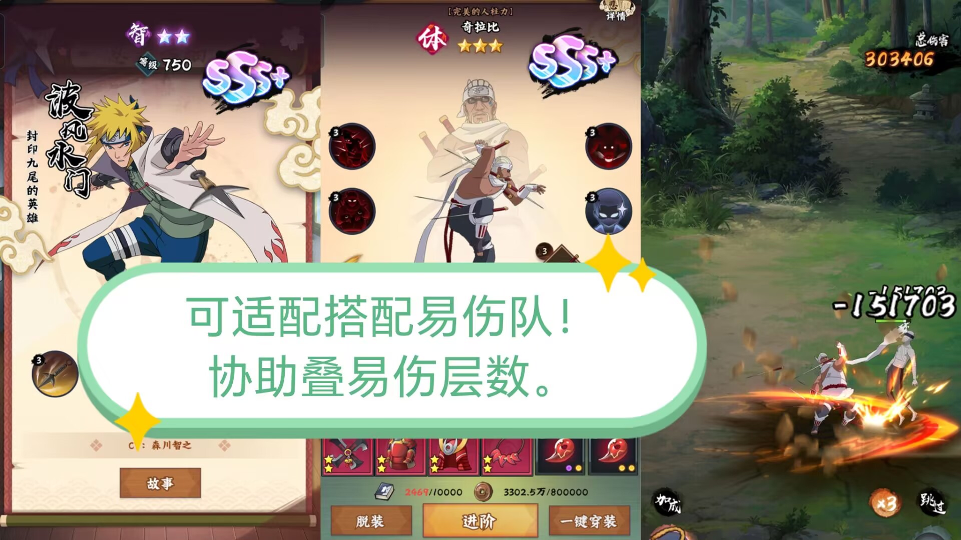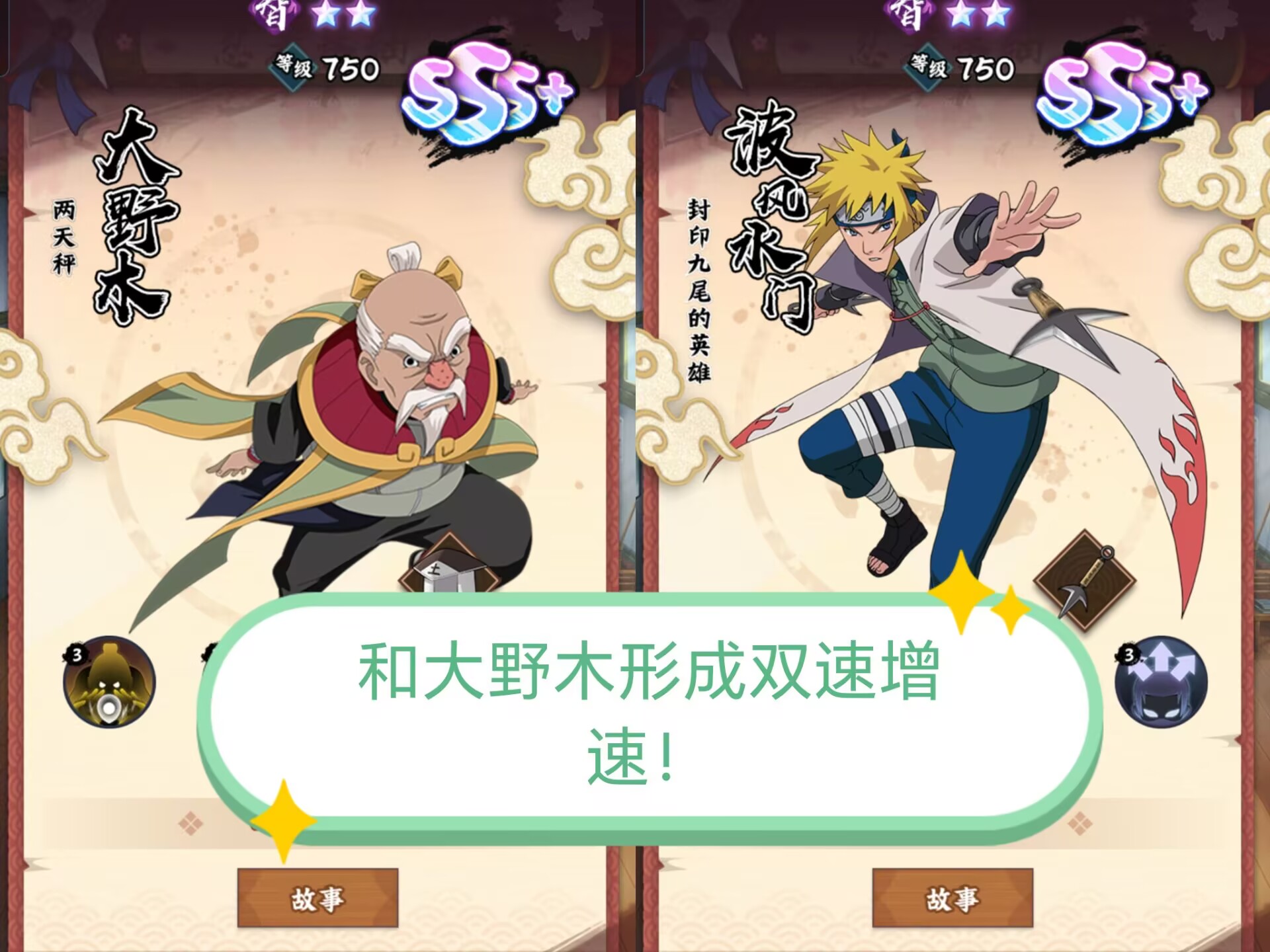 总结:因此水门也是要速杀队必备的忍者,和三代土影大野木互相配合,给队友加速,行成速杀队伍。