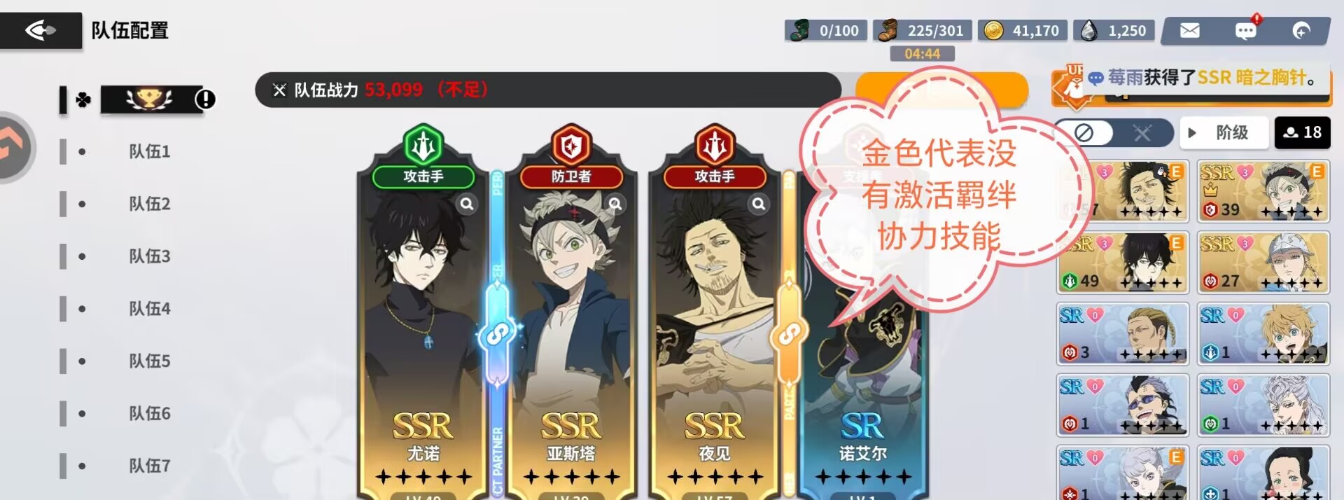 2:开荒阵容配队推荐:阿斯塔+尤诺+夏洛特+夜见团长。
