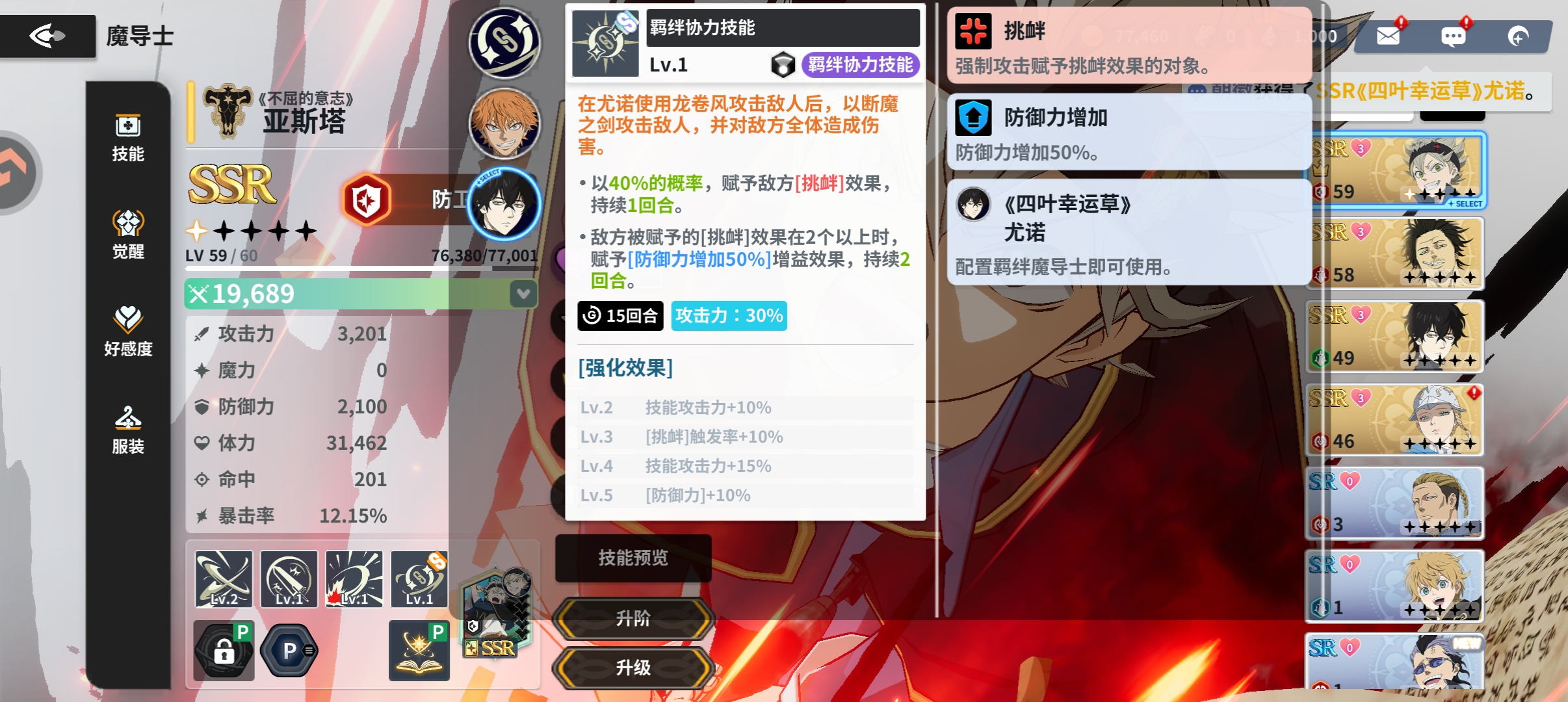①亚斯塔:我们的主角之一,攻守兼备!你说强不强!自带挑衅,可以吸引大量火力,为队伍优化作战环境,而且自己还可以解除负面,给队伍提供大量的防御加成,能抗能打!可以和尤诺激活协力技能!开荒战神。