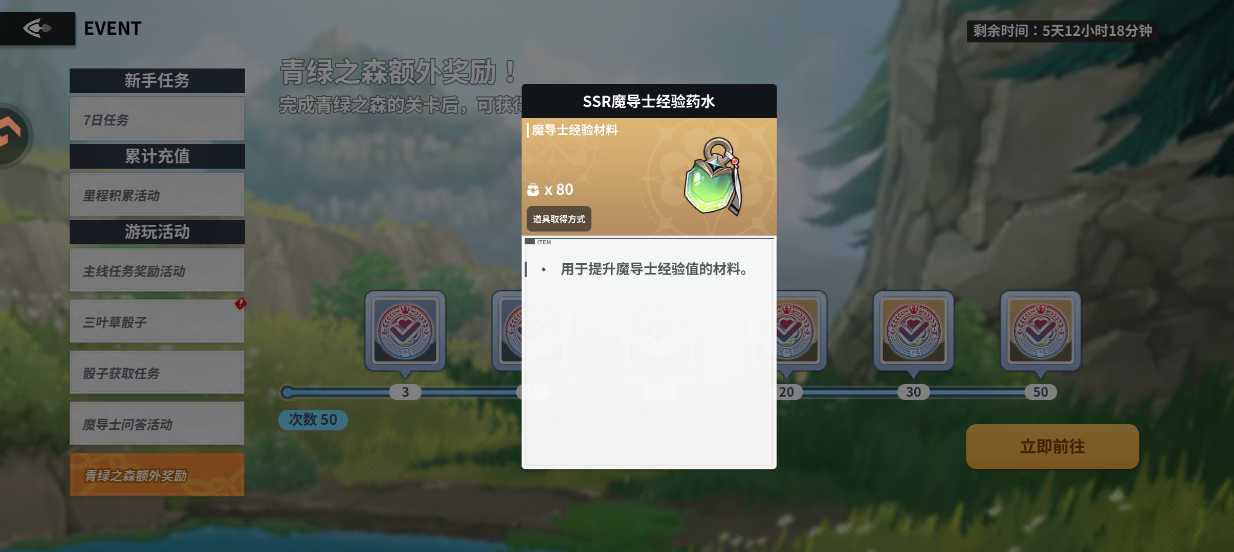 ②完成这个很简单,第一天就可以完成,就是打50次的经验副本,然后可以获得额外大奖的经验药水,属于开服白嫖的活动了。