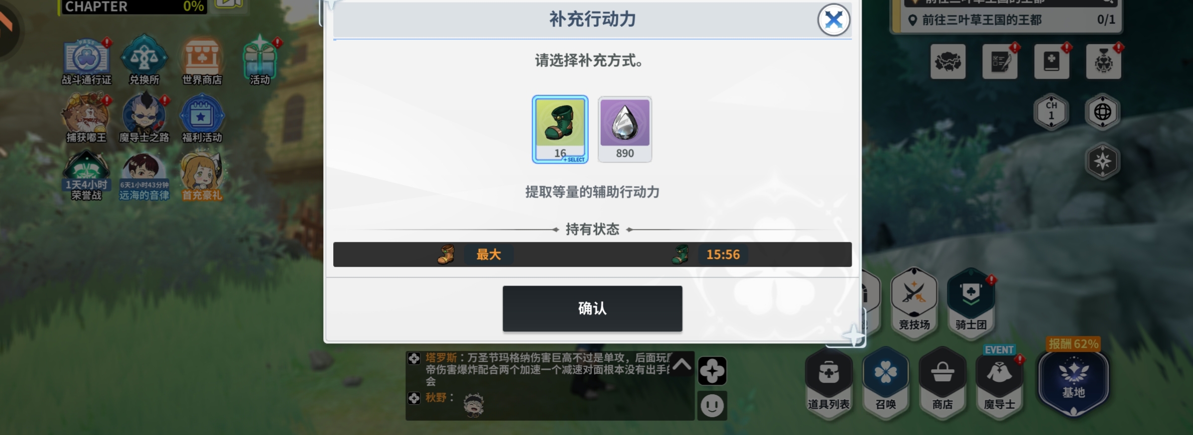 体力前期实在是太缺了,比如我们需要刷副本【绿野之森】来获得大量魔导士经验用于升级提升战斗力,需要消耗大量的体力。