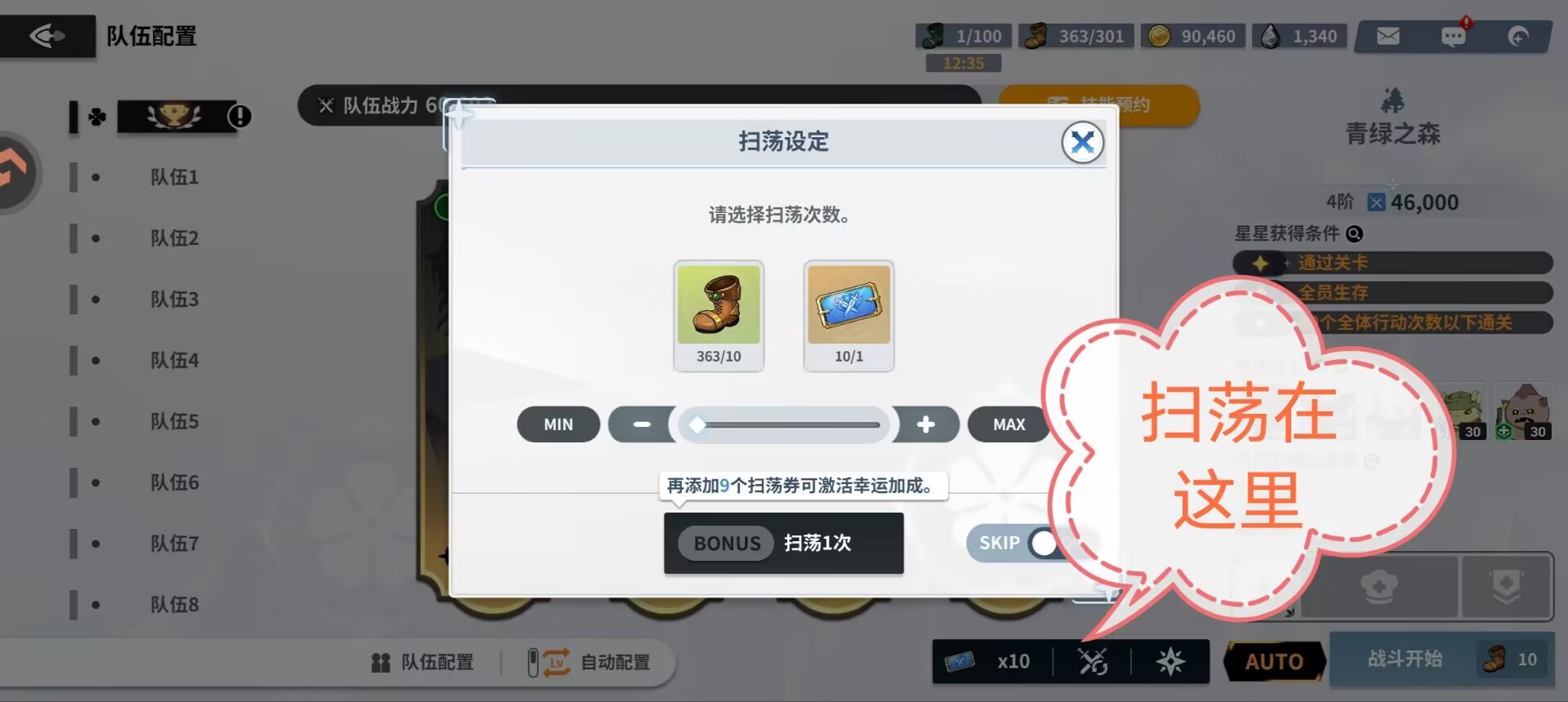 这里补充下很多新手找不到【扫荡】进入战斗后在战斗信息的下方就可以找到扫荡。