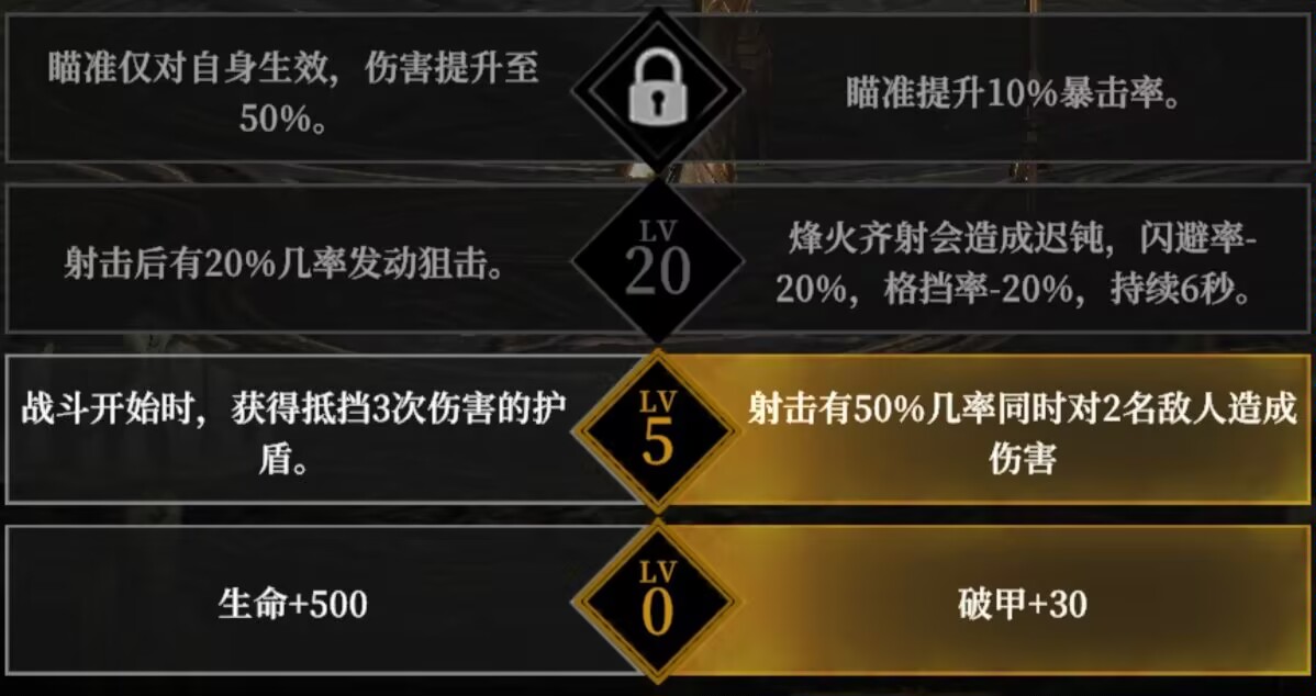 解析:这套天赋加点,加大提升了自己比队伍的功能,可以额外提升队伍暴击,并且大招可以降低敌人的闪避和格挡率。