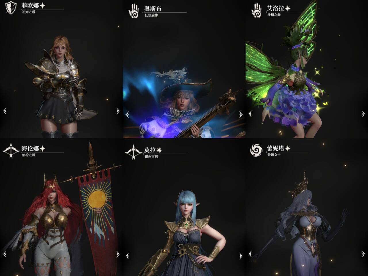 初光之盾+狂野旋律+叶梢之舞+银色审判+焰枪之风+骨语女士。