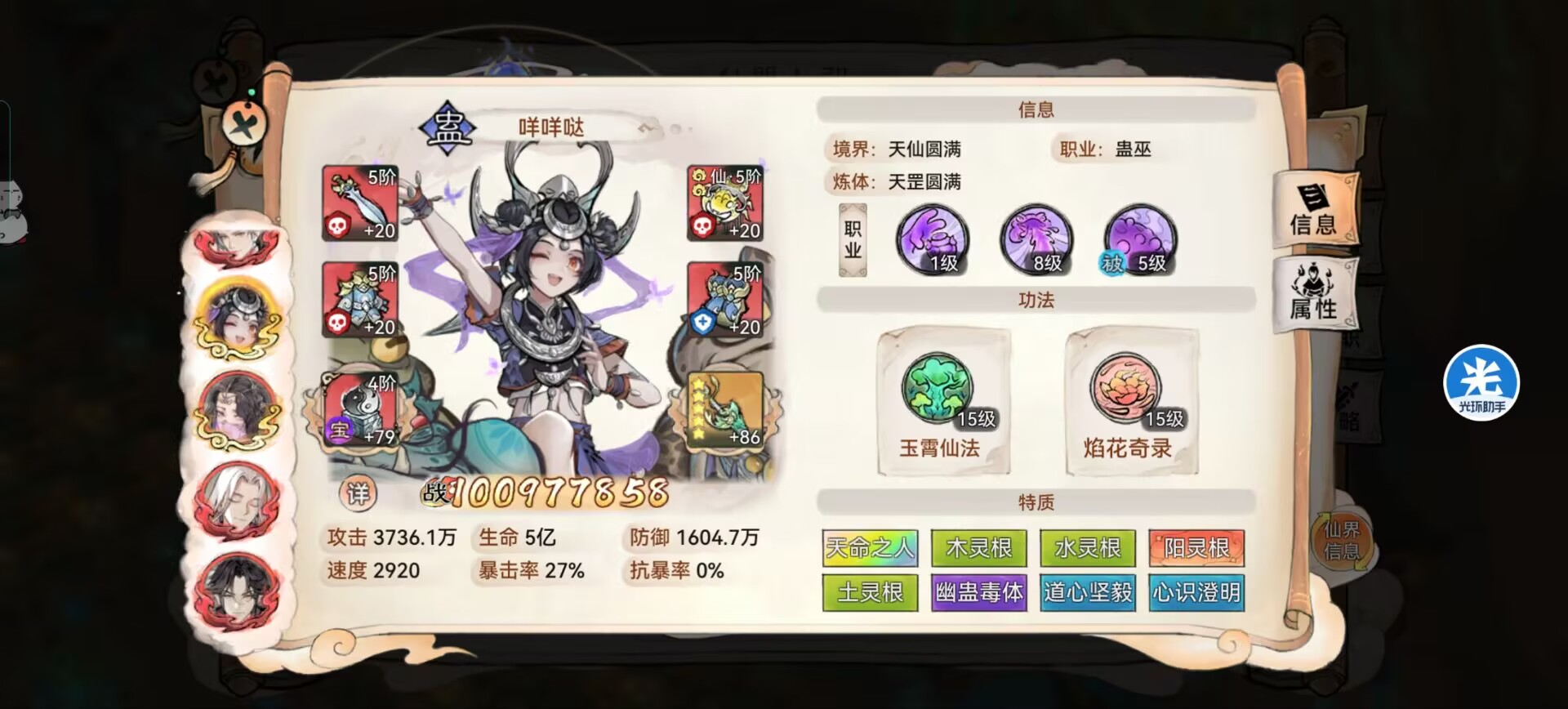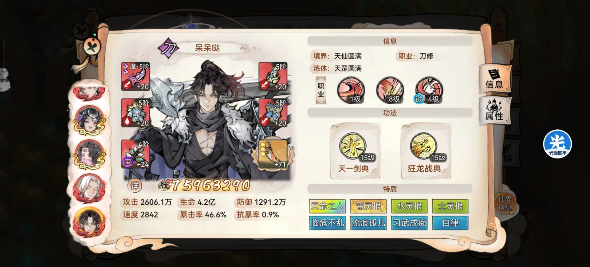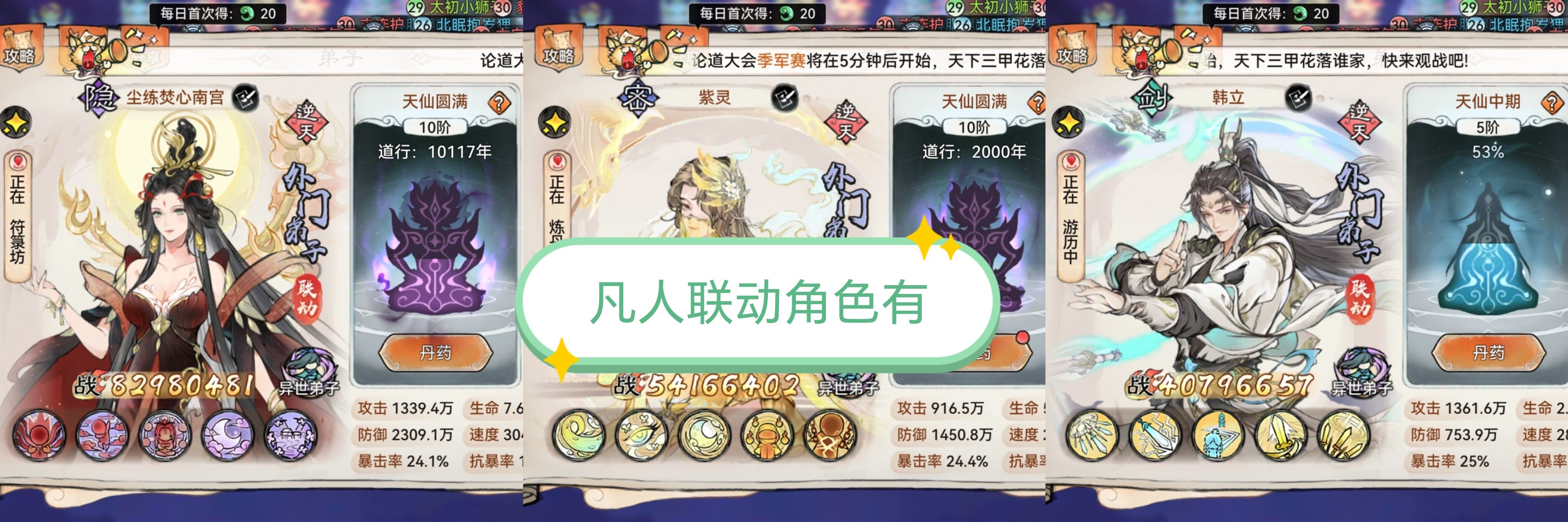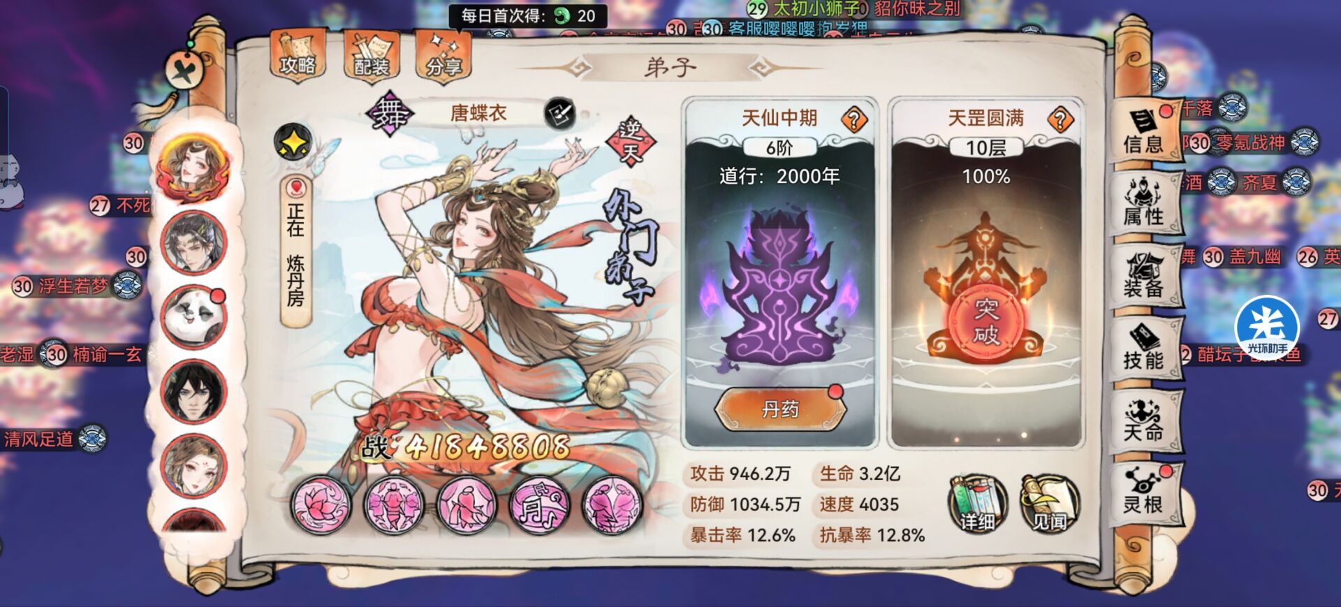④而抽唐蝶衣也是为了买【烟花】给阿璃用,而且唐蝶衣也很适合韩立速攻队,唐蝶衣可以不到仙一阶开启天命赐福15%速度加成即可。