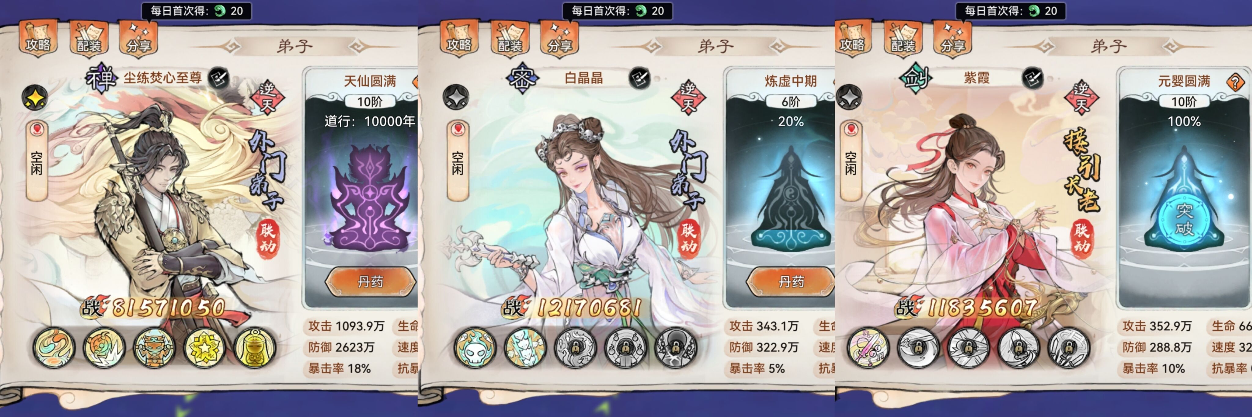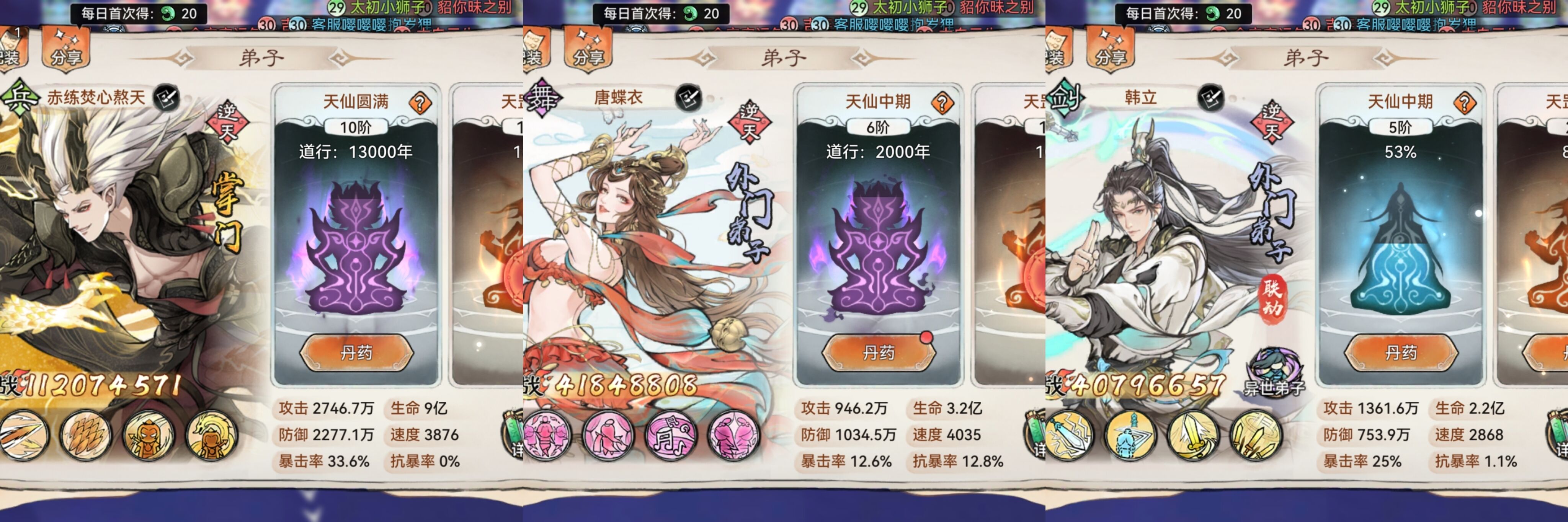 ②卫寒:也是很推荐0氪微小氪玩家去培养的。打仙界pve仙墟之王,打仙墟真正的核心!而且卫寒pvp能力也不差,放在阵容里也哪里都能用也是除了核心输出弟子,生存力也强,有锁血输出也高。
