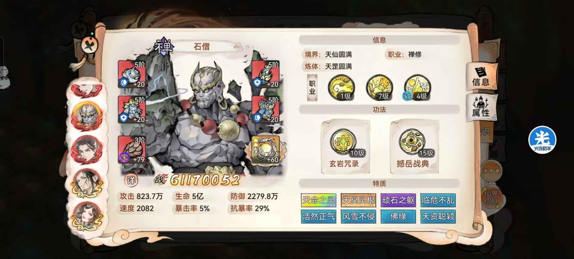 因为这个返场没有至尊宝,所以石禅是你的首选!而且石禅不需要像韩立那样需要氪328元买道兵才能玩,直接用巨灵即可。