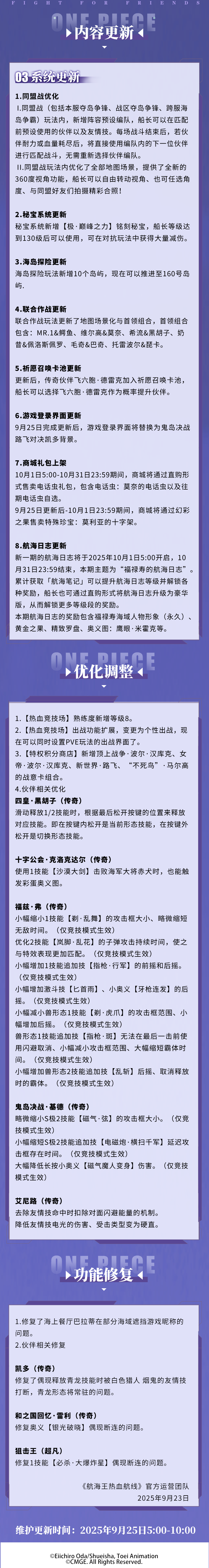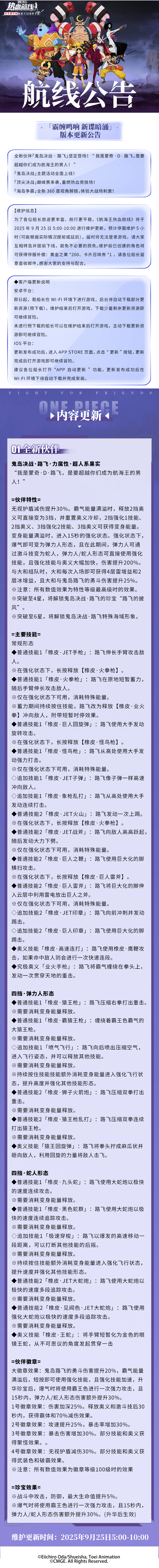 全新版更来袭!鬼岛决战·路飞坚定登场!鬼岛对决开启,鬼岛决战·甚平免费获取!同盟战体验大优化,海岛探险。联合作战更新,全新PVE体验!