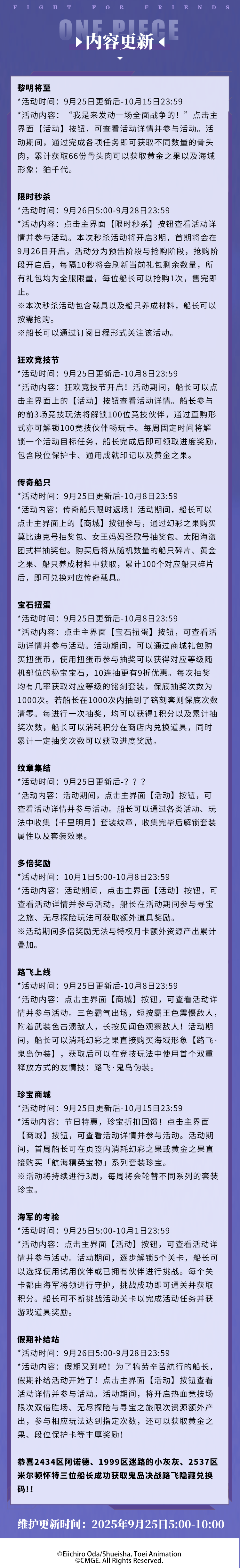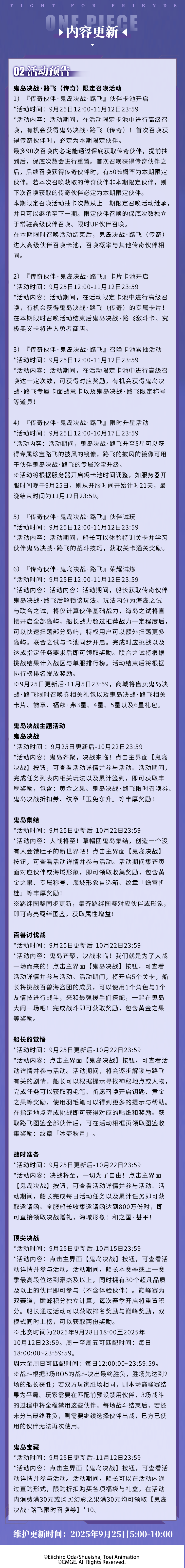 鬼岛决战·路飞登场时间:9月25日12:00