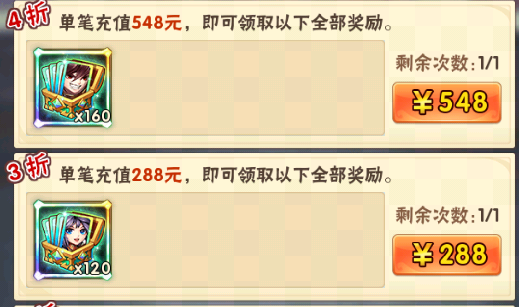 前七天性价比超高的宝物单冲(648=60宝物)和彩金武将单冲,个人只推荐氪金武将,宝物七天后慢慢攒即可