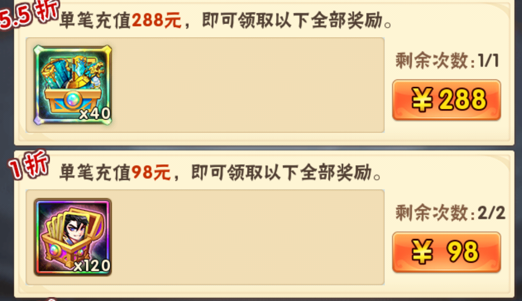 前七天少有的琉二武将/琉一武将售卖地,相比第一天大量氪金(648=100琉一武将碎片)才能出琉一武将性价比超高,如果想在前七天拥有较大优势可以考虑