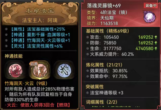 可以对全体敌人造成无视护盾的285%倍率物理伤害,而且可以减少敌人的法宝蓄力,一定程度上可以限制法宝的作用。