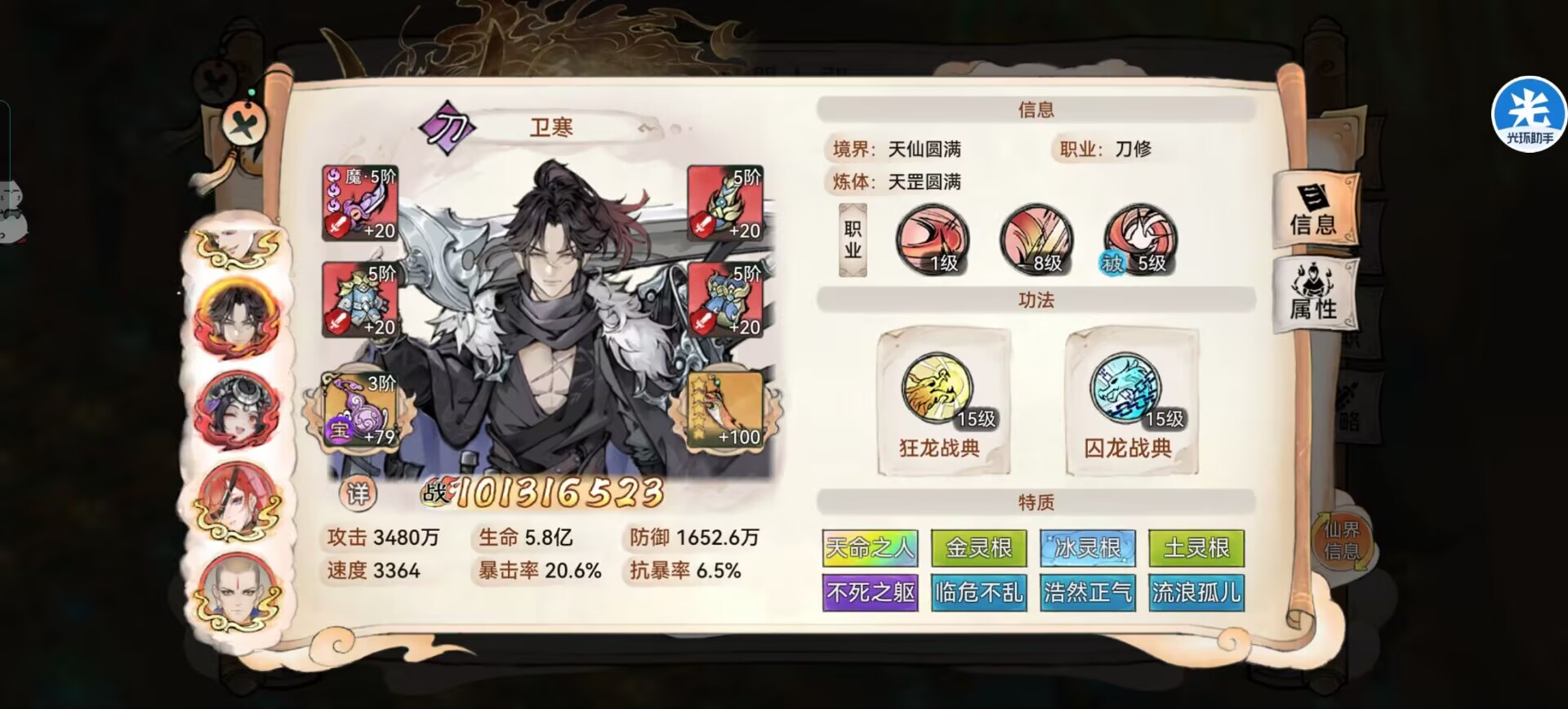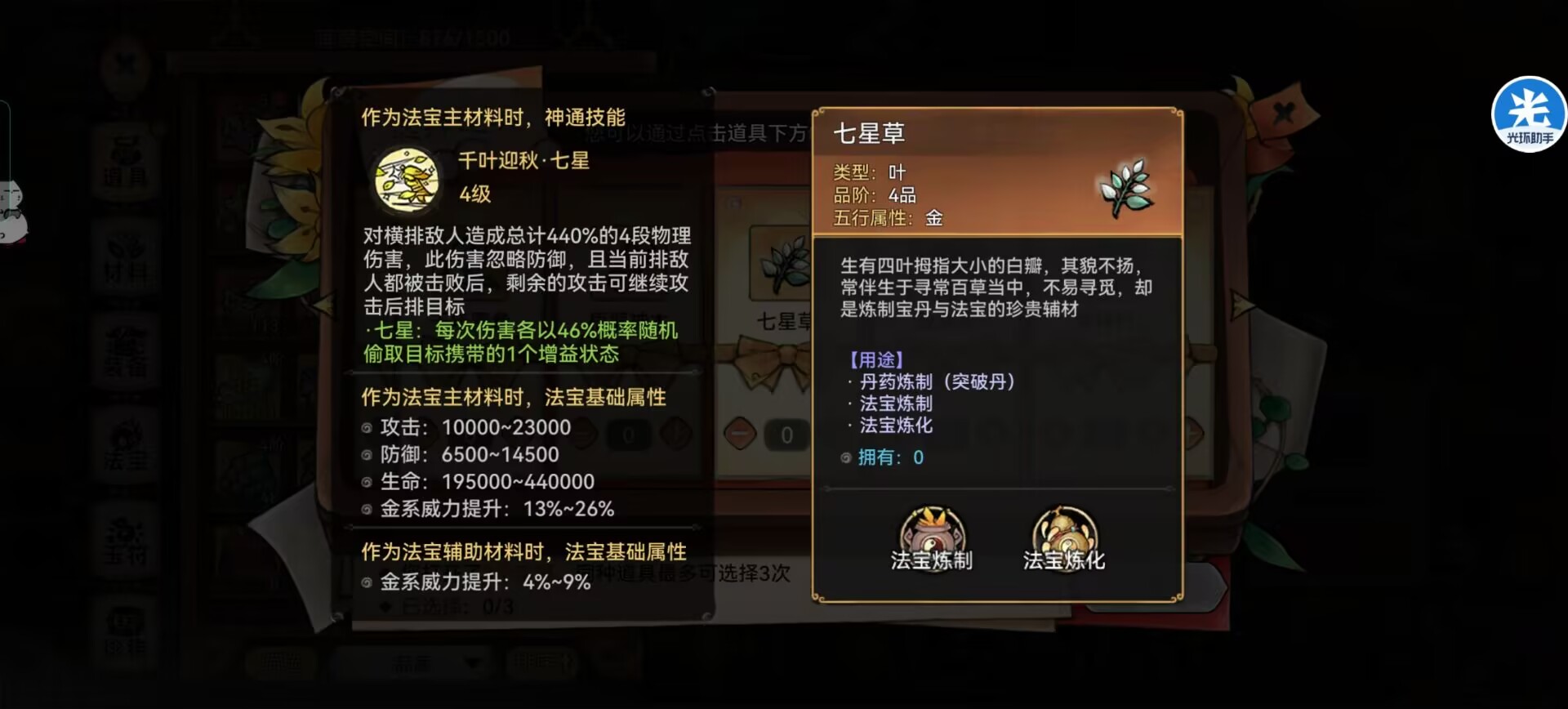 3:阵容主力是【卫寒】的玩家四阶法宝推荐:四阶星(七星草)。
