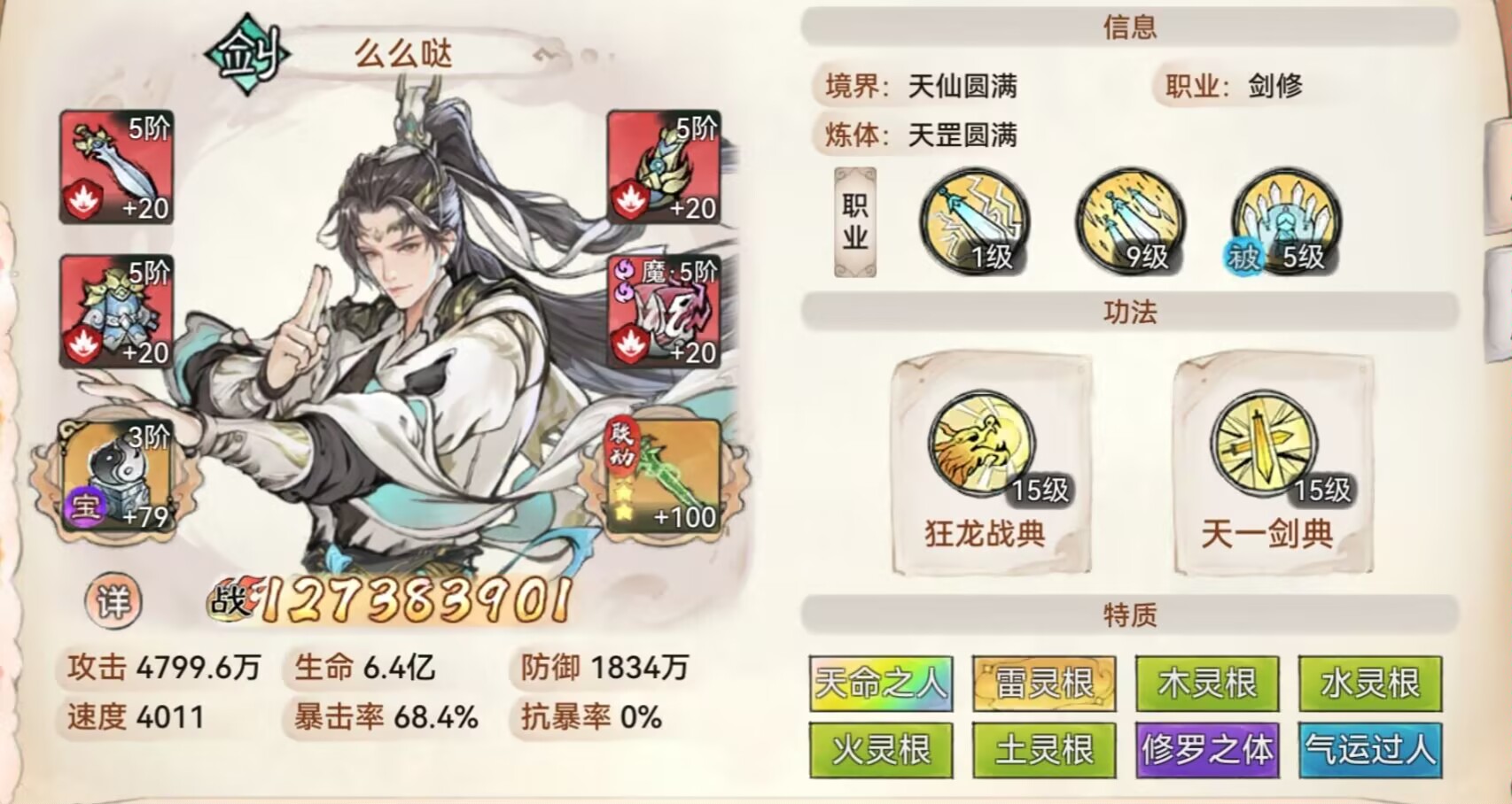 功法一般都是带狂龙+天一。所以七星草的金系加成和无视防御的效果是最好的选择。