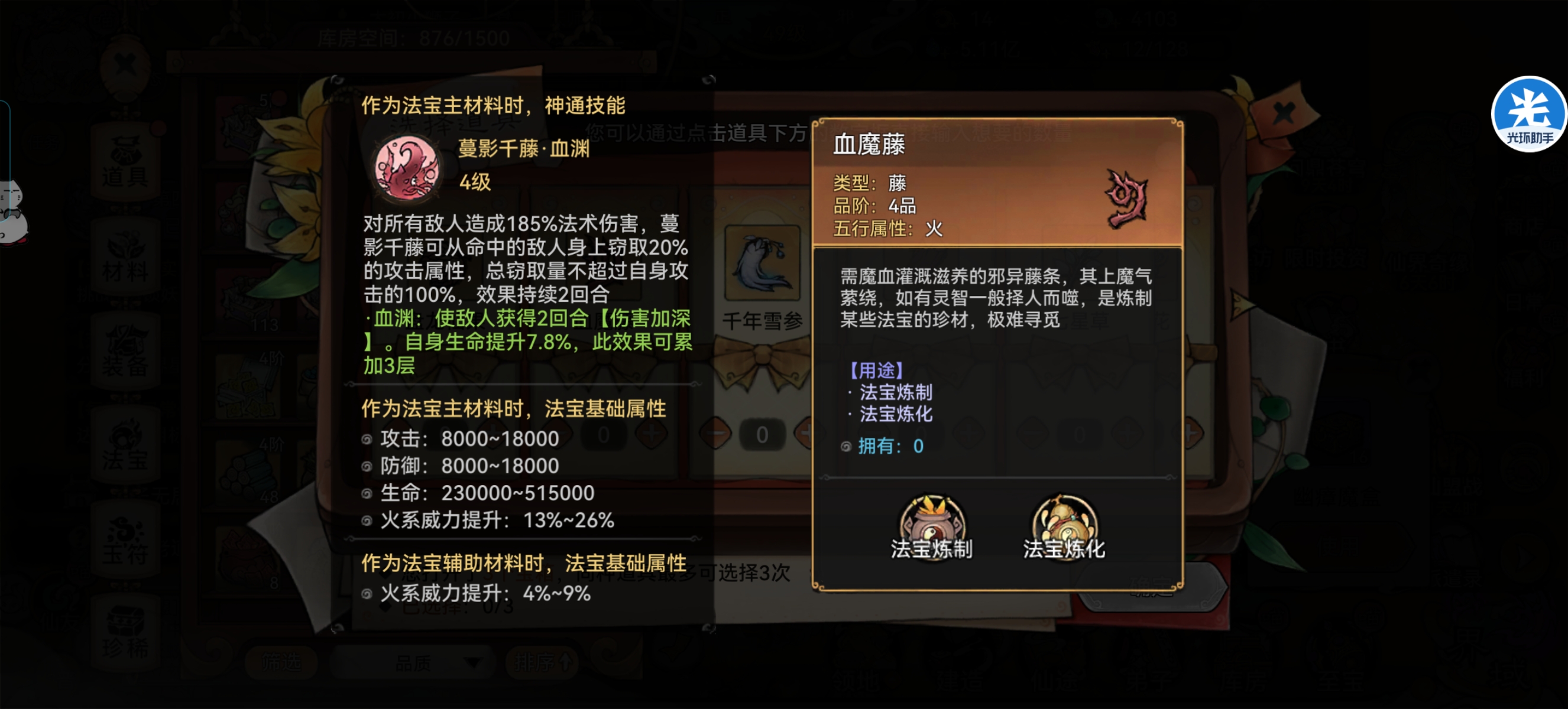 由于目前制作【四阶法宝】的材料目前是一个巨大的缺口!想做一个四阶法宝又谈何容易!